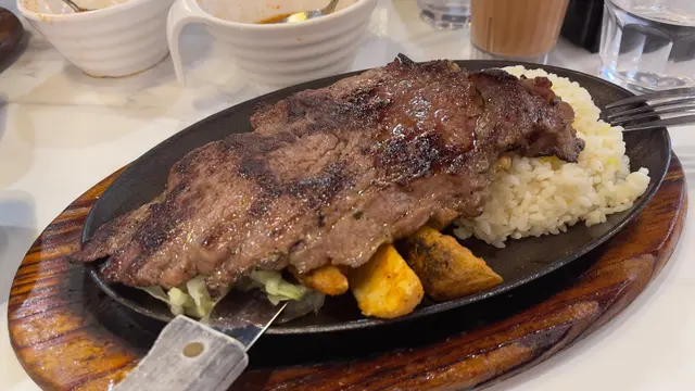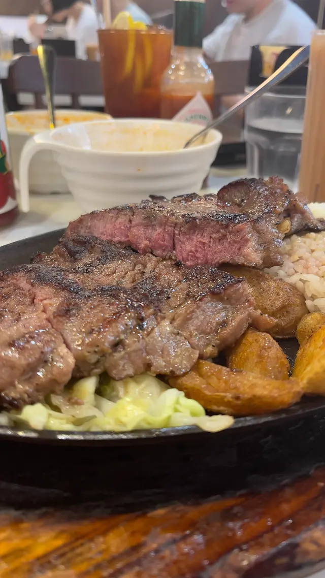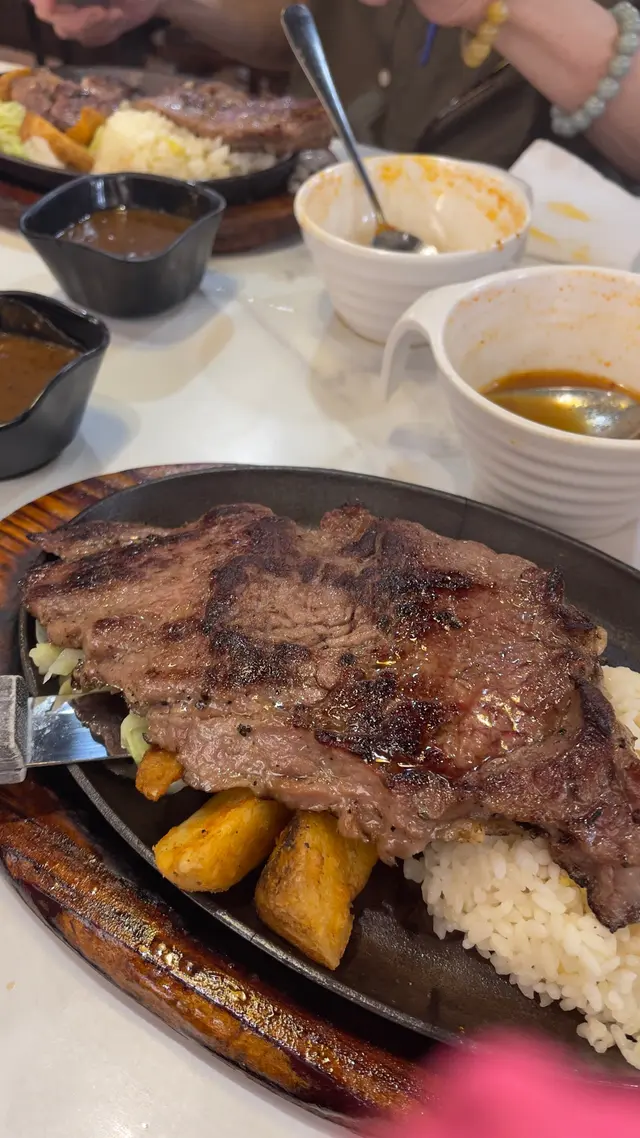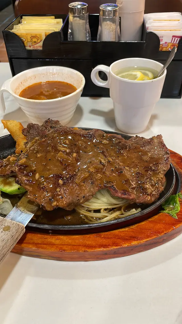長沙灣特大西冷扒 shekheilee等级22025-11-20 关注 平價西餐廳😋😋😋😋大切特級西冷牛扒🐂先黎羅宋湯🫕,湯料好足,有蔬菜🥗及紅蘿蔔🥕,絕不欺場,但味道偏甜。輪到主角大切西冷出場,聽到黑椒汁響鐵板上噼啪✨作響,兒時食鐵板餐嘅回憶返哂黎🥳。牛扒都算易切,但略帶少少筋,黑椒汁夠惹味,口感當然唔及頂級牛扒,但都總算合格🆗,份量十足,搭配扁意粉🍝、香脆薯角、紅蘿蔔及椰菜,非常飽肚🤗。呢個價錢絕對物超所值,又唔使收加一服務費,真心抵👍!!…查看更多以上食记乃用户个人意见 , 并不代表OpenRice之观点。赞好分享長沙灣特大西冷扒 尼奧餐廳 https://s.openrice.com/QrLT0yAMlW0检举 张贴 评分4味道3环境3服务3卫生5抵食用餐途径堂食