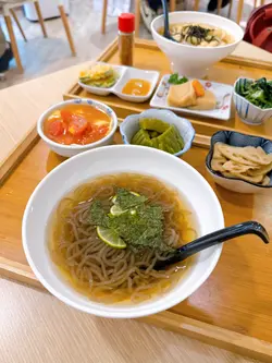 在假日与吃素的朋友一同品尝了餐厅的轻怡午餐,环境舒适,整体体验令人满意,值得推荐给喜欢适合素食者及追求轻食健康的的朋友🥬💁🏻♀️我的选择:轻怡午餐 $98 + $10转蒟蒻面前菜选了番茄鲜腐皮、苦瓜煮、炒莲根,三款皆以清爽见称,尤其番茄鲜腐皮酸甜开胃,味道平衡得恰到好处。主食加$10转为蒟蒻面,口感弹牙且低卡路里,青柠冷汤底清新微酸,非常适合夏日享用😋💁🏻♀️友人的选择:轻怡午餐 $98 + $5 转油扬汤乌冬前菜选了高野豆腐、麻酱菠菜、南瓜天妇罗。豆腐香滑,麻酱菠菜香浓而不腻,南瓜天妇罗外脆内软不油腻。主食加$5转为油扬汤乌冬,汤头温和,乌冬滑溜,油扬吸满汤汁,风味十足👍🏻🍫 餐后附赠甜品:朱古力糯米糍口感软糯,甜度适中,为这顿餐点画上完美句号。…查看更多