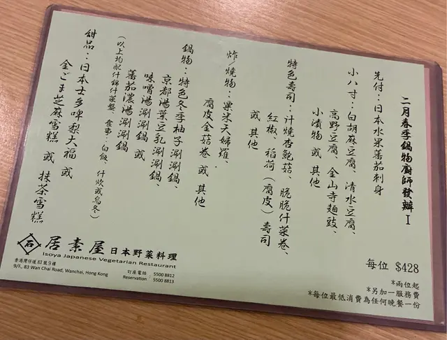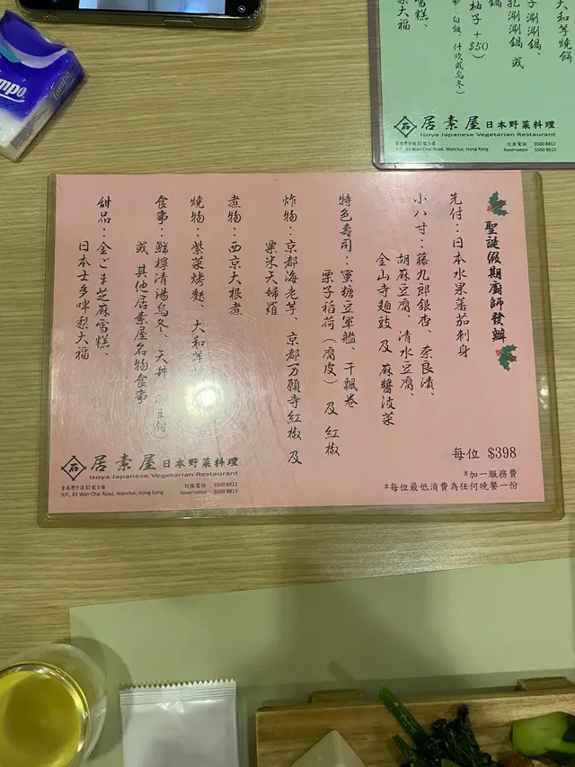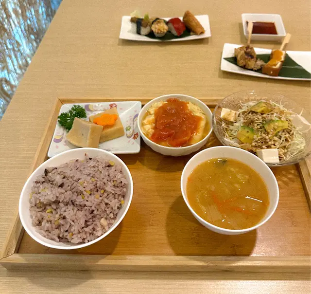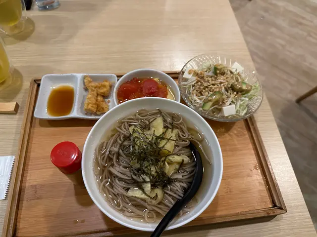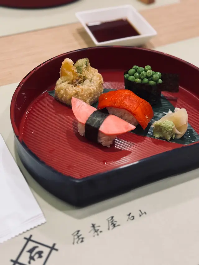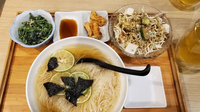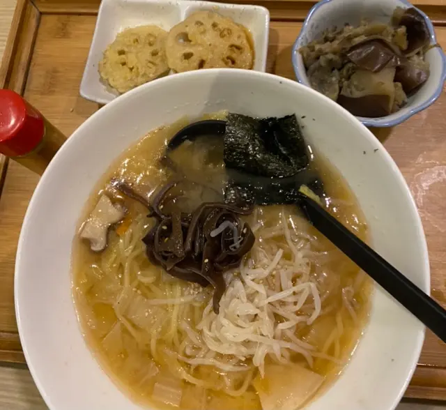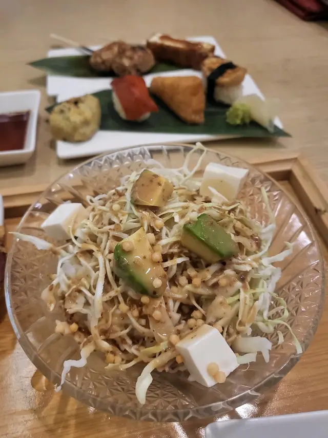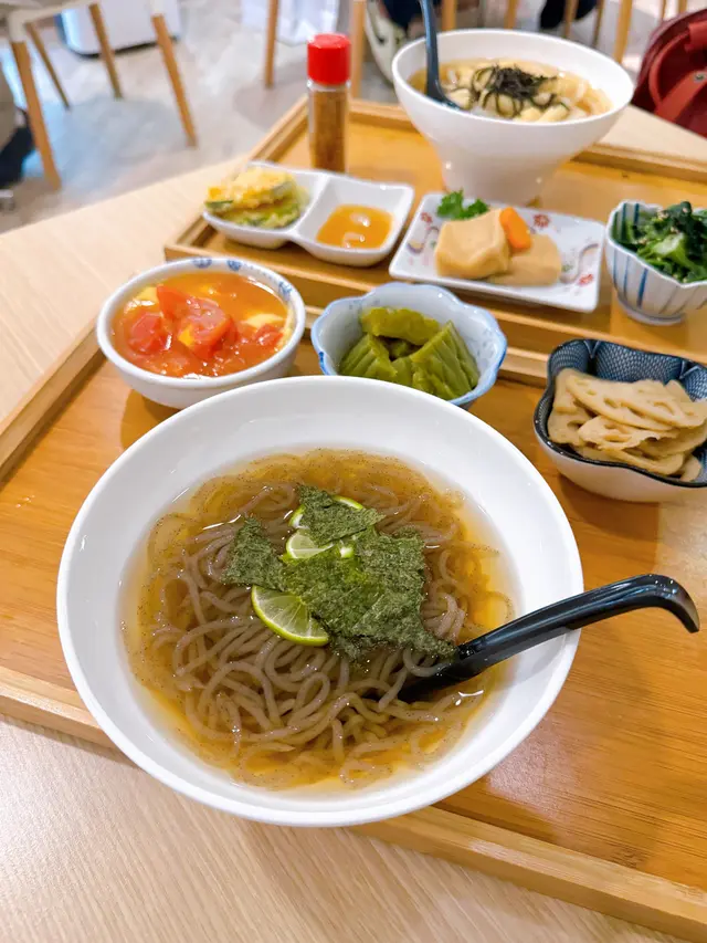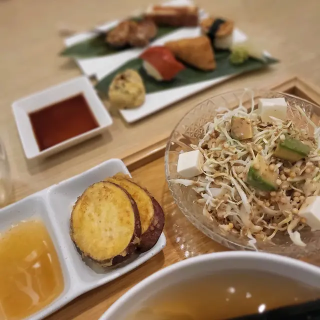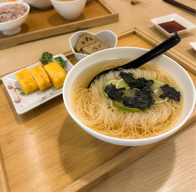 在假日與吃素的朋友一同品嚐了餐廳的輕怡午餐,環境舒適,整體體驗令人滿意,值得推薦給喜歡適合素食者及追求輕食健康的的朋友🥬💁🏻♀️我的選擇:輕怡午餐 $98 + $10轉蒟蒻麵前菜選了番茄鮮腐皮、苦瓜煮、炒蓮根,三款皆以清爽見稱,尤其番茄鮮腐皮酸甜開胃,味道平衡得恰到好處。主食加$10轉為蒟蒻麵,口感彈牙且低卡路里,青檸冷湯底清新微酸,非常適合夏日享用😋💁🏻♀️友人的選擇:輕怡午餐 $98 + $5 轉油揚湯烏冬前菜選了高野豆腐、麻醬菠菜、南瓜天婦羅。豆腐香滑,麻醬菠菜香濃而不膩,南瓜天婦羅外脆內軟不油膩。主食加$5轉為油揚湯烏冬,湯頭溫和,烏冬滑溜,油揚吸滿湯汁,風味十足👍🏻🍫 餐後附贈甜品:朱古力糯米糍口感軟糯,甜度適中,為這頓餐點畫上完美句號。…查看更多