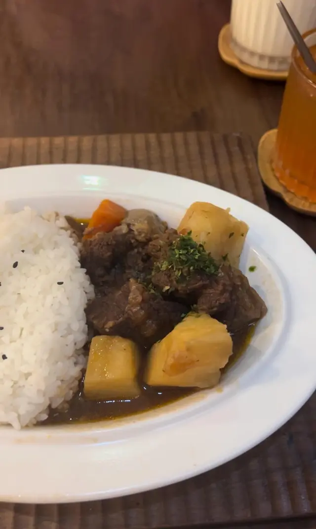 住沙田幾十年其實要找間愜意舒適的咖啡店其不容易,幾乎每次都要去到大圍才會找到這種小店,而這間開業十多年的一直都是我的口袋名單之一,只要想享受寧靜空間的時候就會想去的咖啡店Afternoon Special Set $60(甜品11選1) / $75(料理9選1) + 飲品(4選1)炙燒焦糖巴斯克 (單點$60)日式燉牛面頰飯 (單點$92)西柚冰茶 (配餐免費)(單點$42)抹茶椰青海鹽奶蓋(配餐 +$28)(單點$50)很少在下午茶時段來用餐,才發現店家的afternoon special set真的很吸引~ 兩個定額價錢就吃到menu上的料理或甜品,而且還包括一杯飲品,加上店家的餐飲都做得非常精緻,平日最愛吃店家的關西牛肉(個人認為是開業之今的招牌菜),這次就轉換口味來試日式燉牛面頰飯,牛面頰搭配薯仔、紅蘿蔔跟醬汁一起燉熟,肉燉得軟嫩腍滑,配菜也非常入味,醬汁味道較濃郁還帶微微辛辣感,配白米飯的話就取了個平衡~ 至於甜點方面有窩夫、雪芳蛋糕、疏乎厘跟芝士蛋糕,選來炙燒焦糖巴斯克,焦糖面做得非常好,薄脆面沒有燒得過火出現的苦澀味道,而巴斯克蛋糕能做到外邊扎實中間軟心,口感軟滑芝士味濃郁,再配上焦糖面實在好吃,比起不少外間吃到的這個實在高質味美~點這個special set會跟配一杯飲品,西柚冰茶是店員推薦的,西柚果肉配上茉莉花茶味道清新,不會太甜有種酸爽感;也可以加錢改配其他飲品,抹茶椰青海鹽奶蓋是其中一款很想試的,做得美美的三漸層:底層是椰青水、中間是抹茶而最表面的是海鹽芝士奶蓋,味道也是相當有層次,先是鹹香又綿密的味道,再來是抹茶的甘澀最後是椰青水的清甜,對比西柚冰茶自己更愛這個味道啊!作為沙田或大圍的居民應該無人不曉這家店了,數來也應該是大圍第一間走日系文青風格的咖啡店!簡潔的裝潢配著木系的傢俱,那種日系文青路線的店鋪在當年的大圍完全是非常新鮮~ 還記得開業頭幾年時想到訪的話真的不容易,每次都要耗上一兩個小時,想吃還要有點運氣;能夠如此受歡迎當然歸功於用心製作出來的美味餐點,日式料理跟甜點都很好吃,也予人一種「家」的溫馨感!縱然店家這些年來經歷過不少挑戰,加上越來越多不同風格的咖啡店進駐,能夠屹立至今成為區內的元祖級cafe絕對有一定豐厚的實力!即使是十多年後的今日想來用餐的話也盡可能避開繁忙時間,因為無論食物水準跟餐廳氛圍還是一貫地保持著,故此平日下午到訪還是蠻多人啊~ 但能夠在這種悠閑舒適又帶幾分慵懶感的地方用餐,可以好好享受寧靜寫意的一刻…查看更多