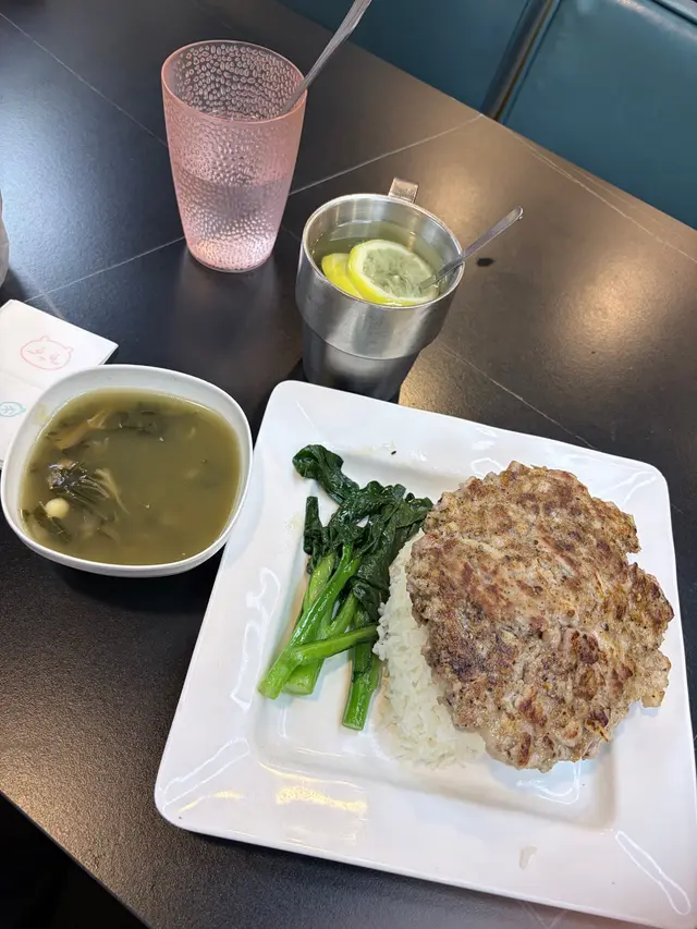 自從肉餅哥執左之後, 一直未搵到好食既煎肉餅上網見到呢間餐廳既肉餅menu款式好多仲好有趣就連芒果同榴槤都會入饌, 所以今晚就專程黎食晚餐每日精選menu 有5個餐, 會包湯同埋熱飲如果食精選menu以外既肉餅就加錢先有野飲今次試左黑椒蓮藕牛肉餅$63, 飯超多肉餅都好大份, 會配送幾條油菜好明顯係即叫即整, 都好快上到餐,肉餅好香口, 加埋黑椒好惹味, 是日例湯係菜乾豬骨湯, 超足料,菜乾消燥除熱岩曬食熱氣野果陣降下火 可惜好細碗, 飲兩啖就無曬 而且餐牌既肉餅大部分都係辛辣口味,無蒸肉餅既選擇如果追求健康/清淡呢度未必適合…查看更多