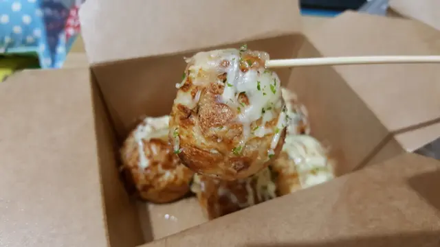 晚飯前經過位於紅橋附近商場的小店,位置不太顯眼,但相信住在附近的人都知道這間小小章魚燒。首先說一下它的裝潢,外面掛著印住章魚燒的紅燈籠和貼滿了poster,而店內只有兩個員工,還有一班正在門口等待外帶的食客。店舖總共有四款口味,分別是原味、蔥、蟹子和明太子,而我點的是原味。而他們有兩個份量可選,分別是4粒和8粒,既可滿足少吃之人,又可滿足大食的朋友!而我點的是8粒原味,大概等了十分鐘左右,熱騰騰的章魚丸便出爐!章魚丸上鋪滿燒汁和沙拉醬,還有一埋木魚放在旁邊。而章魚丸的質感相對香港其他同類型的章魚丸店比較軟,有點像在大阪心齋橋吃的那種,令我不禁想起大阪的感覺!而味道方面亦都調配得很好,章魚也蠻大一顆,非常合我口味,相信不久將來我會再來吃!😊…查看更多
