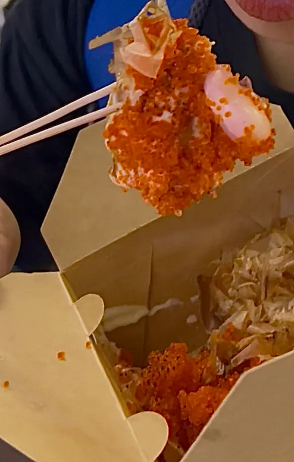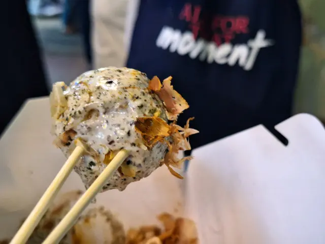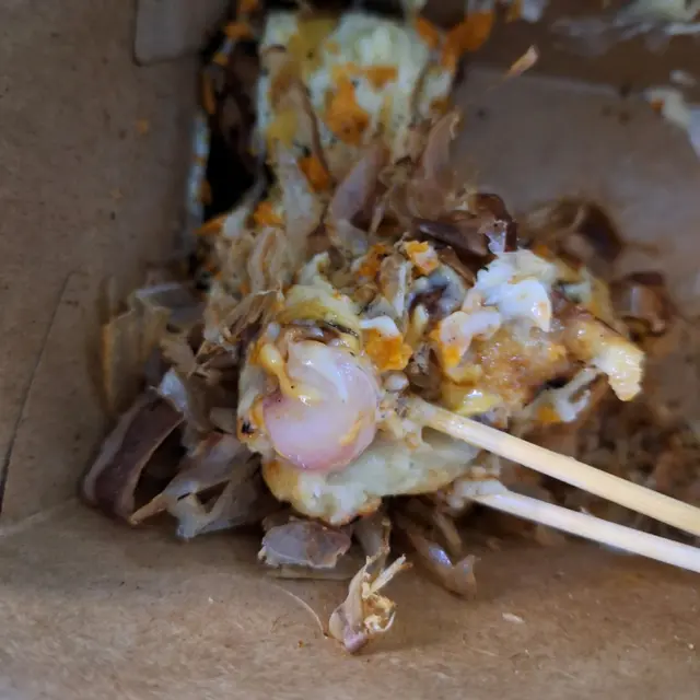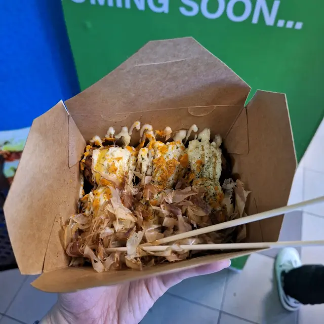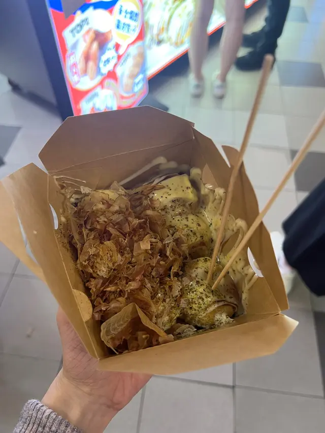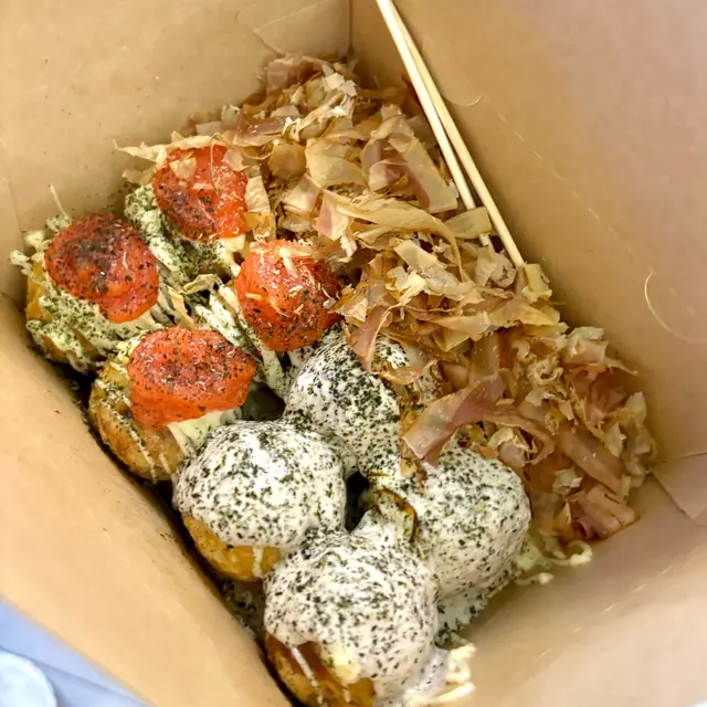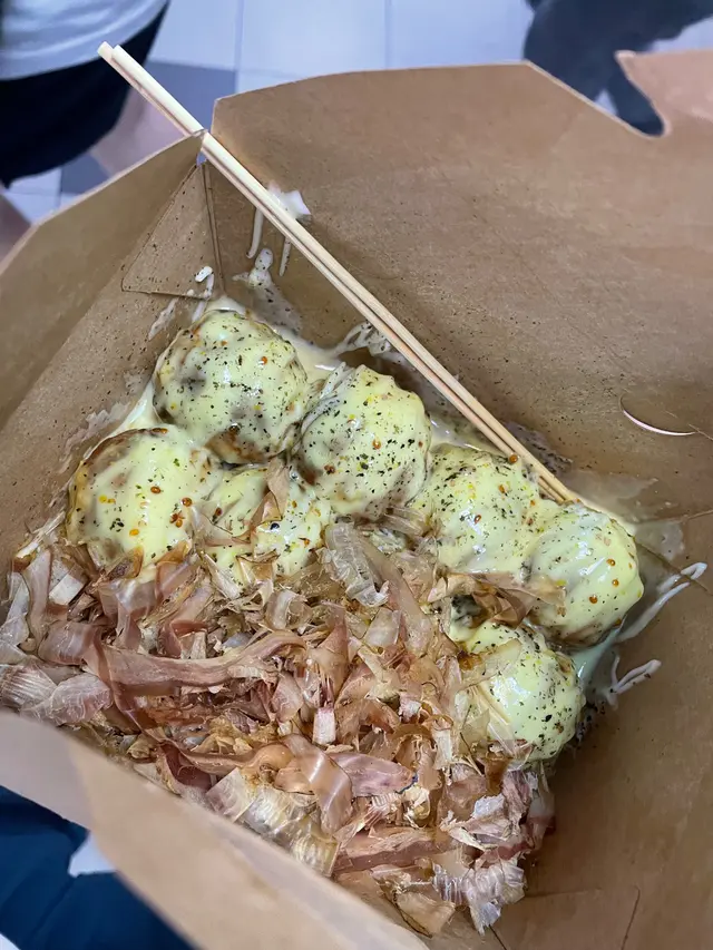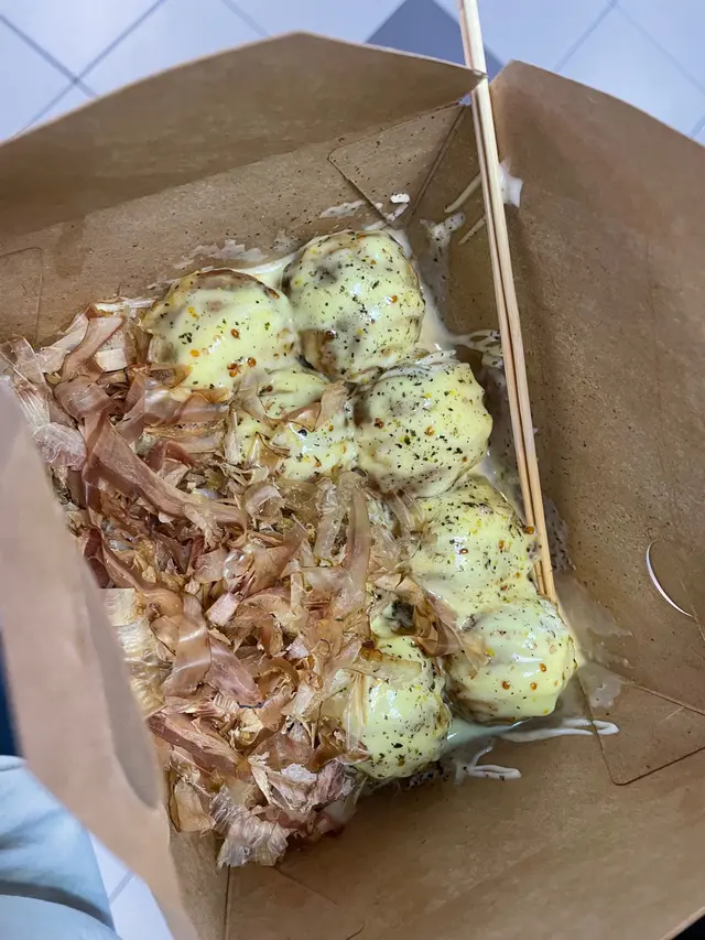 屯の大阪章魚燒點了明太子和蜜糖芥末終於試到想食好耐的章魚燒了。 章魚燒的size比想像中細, 但都幾好, 因為我們都食唔到太多。如果三個人食, 每人每款食兩粒, 是最好的, 純為方便我們傾密計才這樣約。朋友選了芝士芝士熔岩, 我十五十六, 黑松露﹑明太子﹑蟹膏都是我心水, 最後選了明太子, 因為不是常常食到明太子。結果芝士味好食d, 章魚粒都好食, 唔韌,粉漿亦比想像中好, 見Social Media經常有人說吃起來一pat pat, 但其實唔會, 雖然佢不怎麼脆, 但是是可以的, 軟軟糯糯容易入口。不過明太子醬實在咸了一點, 這一點Social Media人們說得沒錯, 真的要減一減咸味, 咸到幾乎食唔到。如果咸度減一點便是完美。…查看更多