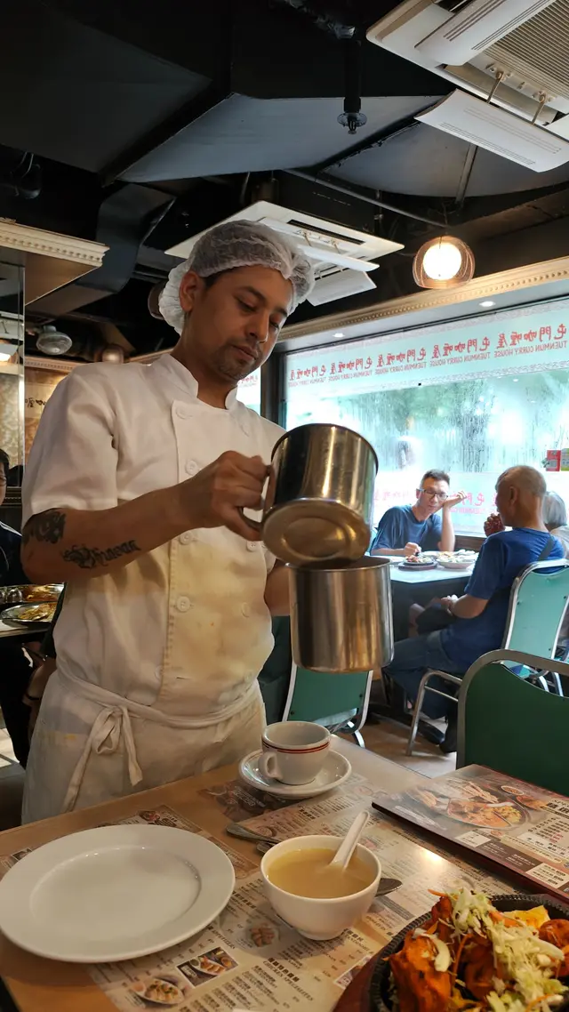 经开屯门置乐又系时候食晏,见到路边嘅咖喱屋餐厅,见有好多食客,所以就贸然入去。午餐价钱合理,有汤有饭有烤饼有菜又有肉连饮品都系$50起,我点咗一份咖喱鱼午餐,再加印度拉茶。可能因为太多客嘅关系,所以都冇乜人招呼,不过上菜速度快,个侍应摆咗一个空嘅杯喺我面前,心谂咁奇怪嘅?见拉茶迟迟未到,吹咗服务员好几次都未有,原来要厨房师傅走出嚟表演喺你面前将奶茶左倒右倒左倒右倒之后先至比一个先至倒喺你个空杯度。咖哩唔太辣,可能迎合左香港口味,拉茶几特别,有香料味,可以一试!…查看更多