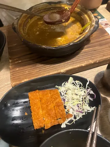 这间乌冬店之前朋友带过我来吃,那次的味道都算不错,所以今天中午便和老公再来吃多一次,味道依然保持水准,但是以平日午餐来说价钱稍贵,而且份量偏少。虾天妇罗煮乌冬配咖喱汤底:咖喱汤底虽然需要额外再加$10,但是味道非常惹味浓郁,而且乌冬口感烟烟韧韧,美中不足是挂汤能力只是一般,而且份量不多,不过味道都算不错。至于虾天妇罗则是即叫即炸,外皮相当香脆可口,虾肉亦爽口弹牙,可惜只有两只,份量真的偏少。吉列猪扒煮乌冬配味噌汤底:味噌汤的味道便稍逊一筹了,汤底不够香浓,而且乌冬挂汤能力又一般,虽然未至于淡而无味,但是不够惹味可口。幸好吉列猪扒的份量都算多,而且外皮都算香脆可口,肉质亦算嫩滑,但是如果有酱汁可以沾上便更好了。鸡翼山:鸡翼山总共有4只鸡全翼,分别是2只黑芝麻和2只红辣椒,全部的外皮都很脆卜卜,而且内里的肉质嫩滑可口,鲜美多汁,味粉亦相当惹味,味道相当出色。日式炸豆腐:看见旁边食客点了,看起来卖相不错,于是我们亦点了一份,可惜豆腐淡而无味,即使沾上酱汁都没有任何味道,完全不值得推介。价钱方面,虾咖喱乌冬$118,猪扒乌冬$108,鸡翼山$88,炸豆腐$33,餐厅设有加一服务费,最后两人总共$382。总结来说,这间餐厅在平日中午都没有午市套餐,全部食物都是晚市的正价价钱,坦白说价钱是比较昂贵的,而且食物份量偏少,如果晚餐来吃会比较划算。…查看更多