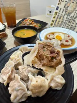 喜欢食饺子既我,经常寻找独特又美味嘅饺子店。今日去太子经过 - 山东小城,正宗北方手作水饺,墨鱼饺更是香港首创,睇见都想入去试吓。除咗太子西洋菜南街分店之外,总店在大角咀埃华街,两间店同样抵食又好食。店内设计以木系简约装修,环境舒适。自家制饺子每日新鲜制造,现包、现煮嘅传统手工饺,除咗有上汤饺子、酸辣汤饺、生饺,亦有汤面、菜饭、炖菜、馅饼、小食及自家制饮品 ; 依度嘅靓汤系用新鲜食材每日熬制,非常清甜绝无味精,用心制作。同埋呢度嘅下午茶餐价钱亲民,值得一试。双拼饺子 配 虫草花南瓜鸡汤 $62拣左独创嘅墨鱼马蹄饺同紫洋葱牛肉饺,饺子皮厚薄适中,烟烟韧韧,两款馅料爆满;墨鱼马蹄饺用上墨鱼汁搓成饺子皮,包著弹牙墨鱼同爽口马蹄;另一款紫洋葱牛肉饺,牛肉鲜嫩,紫洋葱爽脆,有点咬口,与牛肉很配,鲜甜美味,肉汁非常丰富,配合清甜滋润嘅虫草花南瓜鸡汤,美味可口。招牌三宝菜饭 $60一碟有齐3种肉类,手撕鸡+炸猪扒+牛肋肉,口感大满足!手撕鸡肉质嫩滑,厚猪扒炸至酥脆,牛肋肉带少少筋,酱汁好入味,炆至软身有些嚼劲,与菜饭拌匀食,令可沾上自家制蒜蓉辣酱更惹味。醉鸡卷 $38小食醉鸡卷是冷盘,鸡肉肉质札实,好鲜嫩,酒味相当浓郁,不呛喉,好味道。老醋海蜇头 (+$15)另一款小食系老醋海蜇头,是凉拌的,海蜇头好爽口,多款蔬菜翠绿鲜爽,微酸嘅醋味,调得啱啱好,口感清爽,好啱天气热食用。冻冬瓜茶 (+$5) 及 冻柠檬茶 (+$5)冬瓜茶自然清甜,里面有龙眼肉,饮起嚟回甘润喉,柠檬茶口感冰凉清爽,好解渴。…查看更多