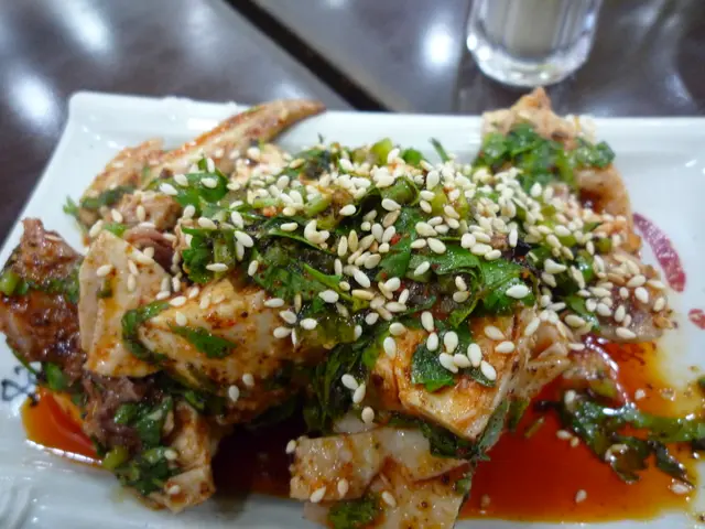 一向去開黃金嗰邊嘅山東餃子館, 那天路過就發覺此分店的食品種類竟比黃金嗰間還多, 一於入店試試麻辣雞 $24 ... 是一客冷盤, 雞皮薄兼肉鮮亦不覺粗嚡, 味道辣也帶麻香, 啃得津津有味。豆腐窩貼 $14內餡豆腐豆味濃郁, 質感唔會帶水, 再加埋火腿粒、菜甫粒 及 香蔥粒, 味道特別;窩貼皮煎到香脆亦不油膩, 厚薄度剛好。排骨燉寬粉 $34 ... 湯底很清但亦能嚐到黃芽白的甜, 寬粉色澤透澈晶塋, 咬落煙韌;排骨是兩件一字排, 無雪味亦無被鬆肉粉過, 原件炆燉能令排骨邊根肉位帶膠, 預先有用白胡椒粉、鮮露等調味料調味, 排骨骨髓也入了味, 食落就有種平凡中的不平凡兩人份量剛好查看更多