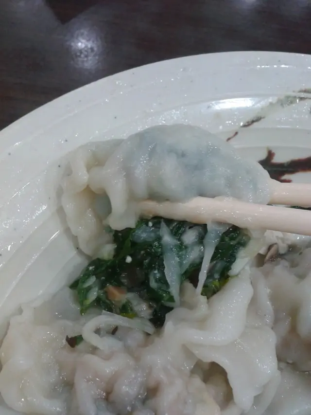 中午喝了一大盅湯連渣也不夠飽當日正是星期一適逢總店休息剛好路過這一間分店記得以往幫襯過深水埗綠林旁邊那間不少次不論麵或餃子也挺不錯的沒多想便進去了坐下先問有沒有蕃薯葉沒猜錯因為真的沒有隨便點了碟生菜($12)全走價錢正常分量也足然後是淨素餃子($26/10隻)問題當然出在餃子身上灼一灼餃子顯然不需時多久可是我一等再等整碟生菜吃過下午茶的客人也逐漸到來旁邊的女客人拿著下午茶餐版問東問西的好不容易才點了淨餃子一份最後她的餃子竟緊隨我那份上桌可想而知我的餃子灼久了多少變成發水餃子了..這裏的素餃本已較為清淡(至無味)這我並不介意而且我本身也較能吃清淡菜但現在不僅餡料都因餃子皮灼至溶爛而流出來連餡料中僅有的少許調味也沖淡夾起來也黏黏答答的夾也不太夾得起感覺實在有點噁心加上餡料又不斷掉下來剩下黏著一兩片菜段菇絲的爛餃子皮讓人難以放進口...........有醋有豆瓣醬加味又如何!餃子不是這麼吃的..不是餡料不足不夠飽滿但賣相、味道俱難以接受"而且心情本已頗為惡劣現在更沒心機了不過本著不浪費的原則!!我吃了九成九...太爛的餃子皮便真的啃不下了山東餃子館我是會繼續光顧不過絕不再來此分間而已或許只點些冷麵之類會較易處理?!查看更多