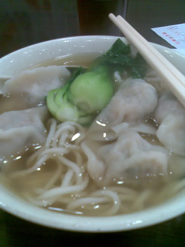 一個人食面, 坐低叫左白菜豬肉餃面.等緊期間睇電視,但畫面有d花餃子好充實,材料充足,呢個皮唔算厚,更厚的都遇過,ok 啦菜同豬肉分佈平均, 食落爽爽地( 因為比較多菜)個面湯不過不失最奇怪個幾條小党菜有wasabi味(扣分!)但我冇留意d阿姐既態度查看更多