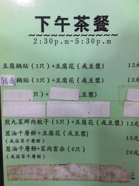 一直以來對在深水埗長沙灣區的此餃子館有點興趣,在其他食家的食評見他們有不同種類的水餃,所以就趁下午茶時間前往光顧。雖然時值下午茶時間,但是下午茶的餐牌其實沒有太多選擇。最後叫了下午茶餐中的蔥油千層餅配菜肉雲吞(6隻),叫做可以一次過試兩樣食物。蔥油千層餅等了很久才來的千層餅,是否即製就不得而知。外型和傳統的蔥油餅不同,有點像台灣的手抓餅。外層烘得香酥鬆脆,內裡則軟糯有層次感,雖然欠缺蔥香,但也是幾好味的。菜肉雲吞每隻菜肉雲吞的size頗大,這可能是北方人的風格吧。內裡的菜餡爽脆,其他方面就一般。這次平平地20元的下午茶算是不錯的,份量也夠飽肚。不過希望下午茶餐牌能加上麵類,或是選擇麵類就送一杯豆漿。查看更多