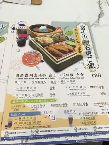 素食文化系香港愈黎愈普及,款式更加唔系单一化旧食既素食店食物, 除左多左素自助餐外 仲多左啲a la carte新款素食,仲可以整到好ig-able 依间就系其中一个例子位于新蒲岗既商场地库, 人流其实唔多 加上疫情更加少人 下午2点左右到 店舖得1个客 反而隔离外卖就排队😂 不过静静地有静静地既好 感觉会安全啲哈哈。 店舖主打日系素食 所以佢既装潢都偏向日系粉红风 十分吸晴Order左依度既特色餐-富士山石锅饭。 本身想试素猪扒 但咁岩卖哂