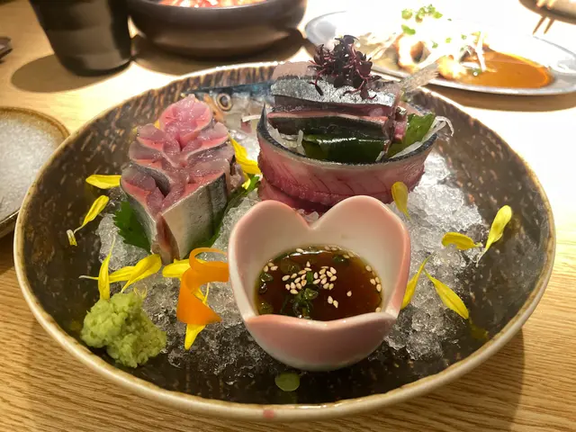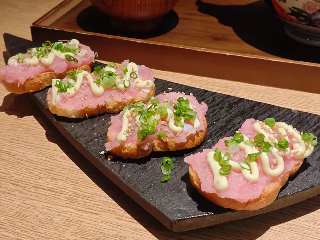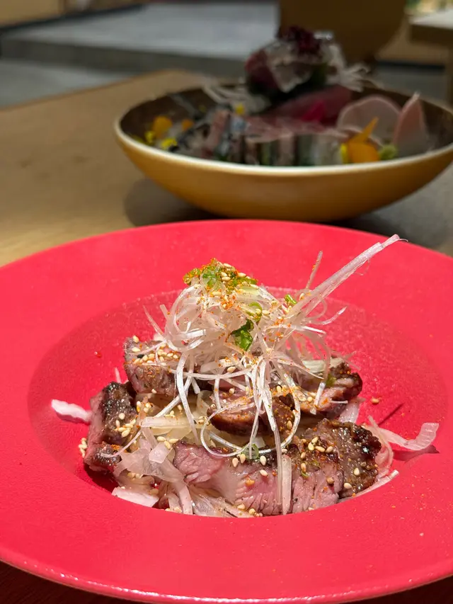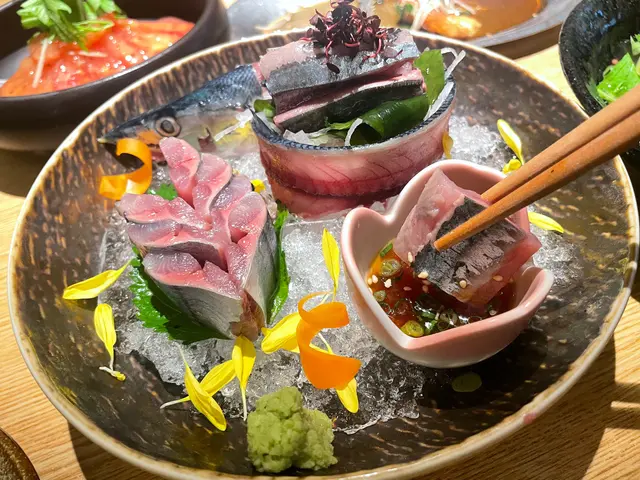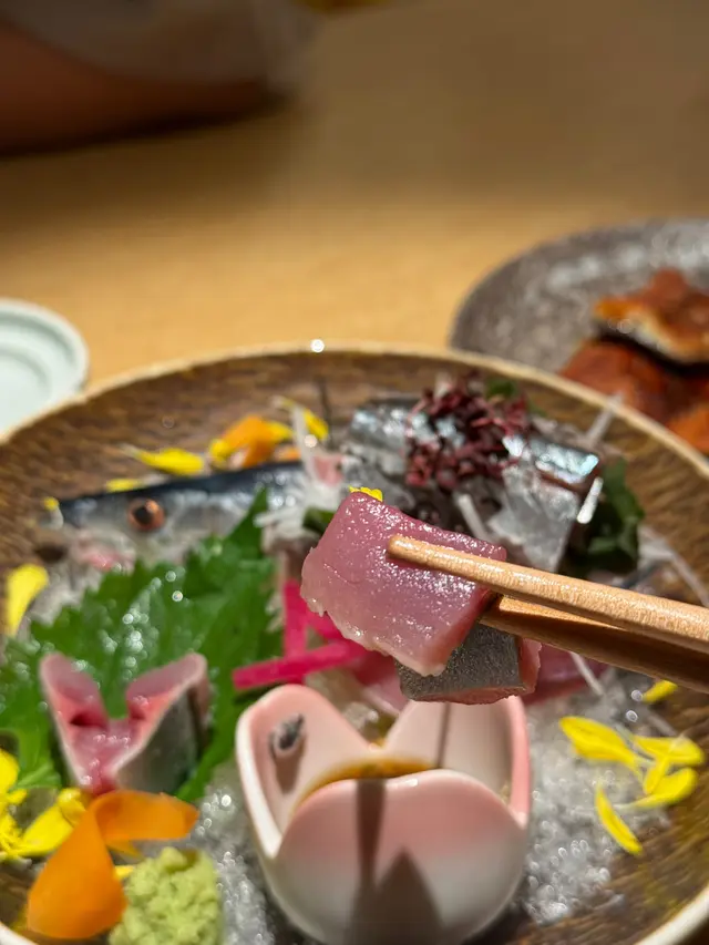 荃新天地下層向來多美食,見到呢間居酒屋🏮裝修幾日系風,加上飲食業近期的確艱難,當然要入嚟支持下老闆都好有禮貌,願意介紹食材的細節位及解答客人各種問題~凍蕃茄鬼蘿蔔蓉蕃茄新鮮爽甜,表面鋪上甜甜的蘿蔔蓉並用上洋蔥🧅絲墊底,撈埋一齊食層次感更加豐富,挺香胃油甘魚鮫🐟啖啖肉,而且師傅調味剛剛好放些檸檬🍋汁再蘸上醬汁,更有提鮮作用~黃鰭棘鯛🐟原條魚奉上,口感新鮮爽甜店員建議可以配上不同醬汁一起吃Ponzu 柚子汁、蘿蔔蓉、蔥花粒、四季紅及餐桌上的北海道醬汁一起吃更有提鮮作用~而個人黎講,基本上不用蘸任何醬汁,更加吃得出其鮮味!!月見火炙左口魚邊丼定食🍱前菜係冰涼牛舌,並配上麵豉湯輕輕燒過的左口魚邊,質感有彈性,味道鱗甜米飯用上醋飯,吃下去帶點微微的酸味挺開胃~鰻魚蕎麥麵(溫)🍜燒過的鰻魚,非常香口,而魚皮更帶點微微的焦香~在這個秋天吃一口蕎麥麵,尤其暖胃~…查看更多