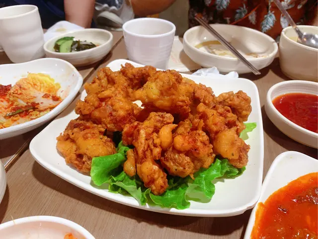 喺观塘发现咗间超正嘅韩国料理「山田海」🇰🇷 一入门口就见到超多明星合照📸✨ 成间店好似韩式大排档咁热闹,虽然系楼上店但晚晚爆场,气氛满分💯我哋今日食咗:🐮 牛肋骨(2人份)|肉质软淋淋,酱汁甜咸适中,两兄弟抢住食到舔舔脷😋🍲 泡菜猪肉汤 | 酸辣开胃,猪肉吸晒泡菜精华,配白饭一流🍚🦐 海鲜嫩豆腐汤 | 豆腐滑嘟嘟,海鲜鲜甜到震,饮完成个人暖笠笠❤️🔥 韩式烤鳗鱼(2人份)| 店员用火枪烧到外皮香脆肉质弹牙,酱汁惹味到想encore!🧀 芝士蒸鸡蛋 | 芝士拉丝超邪恶,鸡蛋滑到似布丁🍮🍗 韩式炸鸡 | 脆粉唔厚,咬落肉汁爆发,脆脆的原味两兄弟最爱重点系🇰🇷韩国老板超用心:✅ 大部分食材韩国直送✅ 泡菜每日清晨新鲜腌制✅ 前菜任添唔手软(劲多款前菜必食!)仲有韩籍店员姐姐超nice🤗 不停请两兄弟食雪糕糯米糍,开心到佢哋跳舞仔🍨💃见到两个仔由头食到尾笑咪咪,仲学识用韩文讲「好好食」😆 呢度绝对系亲子友善之选,等位时仲有电视播K-pop MV睇唔闷亲~ 一定会再嚟encore!👨👩👦👦💕…查看更多