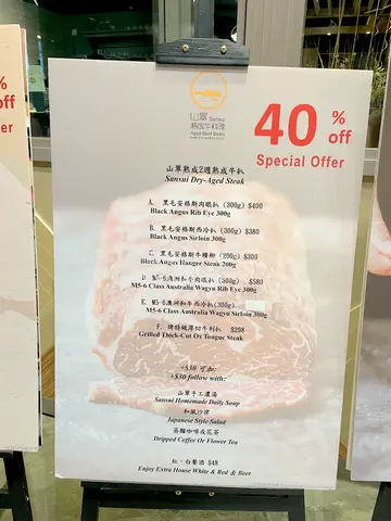 My mom spotted this place in a back corner of K-11 mall when she stopped at a coffee stand. She thought it looked nice (and that the steaks were 40% off) so took me and my dad later for dinner.We all ordered steaks, of course. I got sirloin. I don’t eat steak very often, but the last time I had steak was at one of those cheap all-you-can-eat places, which was a mistake. The difference between this steak and the cheap one was SOOOOOO big! This was one was tender and had such a nice beef flavor. I have decided I need to only eat nice steaks from now on. We added on the salad, soup and drink (+ $30), and it was all very pleasant. I was surprised (in a good way) that the tomato soup (HK-style borsch) had tofu puffs in it. We were very full and satisfied after the meal. I just wish I were near K-11 at lunchtime. I want to try the lunch menu too!…查看更多