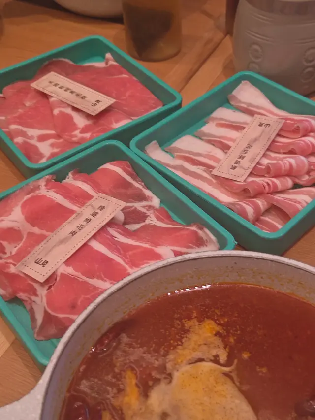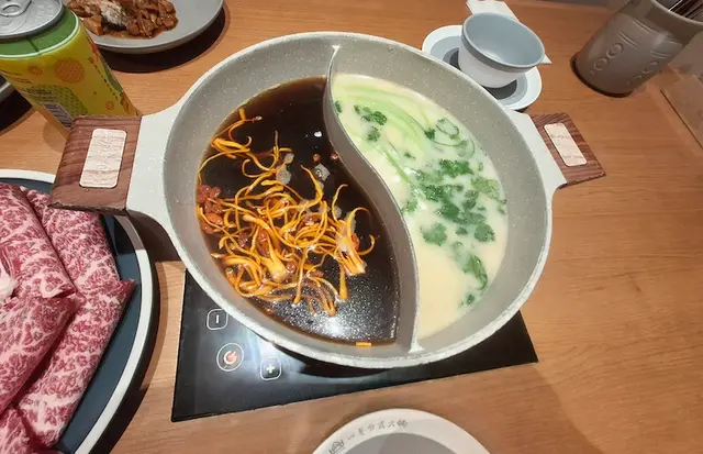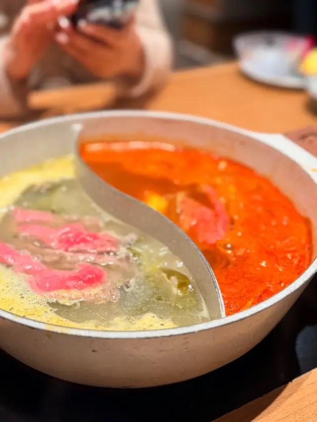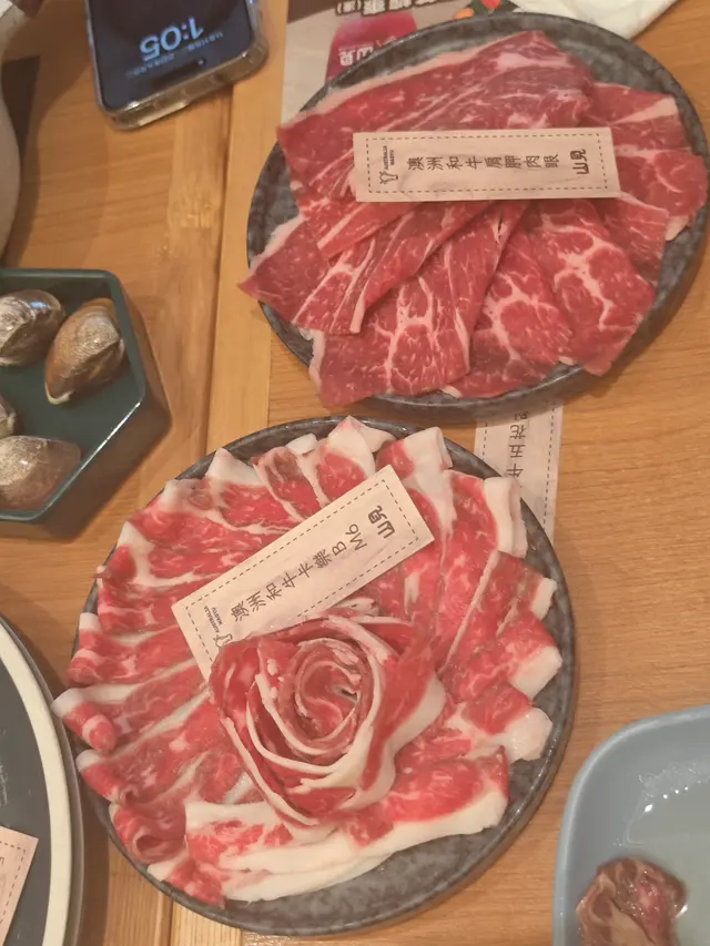 湯底自然是靈魂所在。我們選擇了鴛鴦鍋,一邊是滋補養生的「上品蟲草木耳鍋」,另一邊則是清甜鮮美的「椰子雞湯」。兩款湯底各有特色,前者滋補養生,後者清甜味美😁完美搭配不同食材。食材方面,山見的選擇非常豐富,而且擺盤精緻,尤其喜歡他們六角形的碟👍🏻讓桌面看起來整齊又美觀。🤎肉類特別推介🥹油花分佈均勻的「澳洲和牛肩胛肉眼」、口感豐富的「美國黑毛豬」,