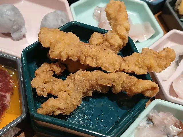 而「牛扑肉」和「牛爽腩」都唔錯,輕涮幾秒就食得!肉質鮮美,令人回味無窮。💙海鮮除了肉類,冇諗過海鮮的選擇都唔少!有大隻飽滿的鮮蝦、新鮮的蜆,甚至還有鮑魚和彈牙的墨魚滑😜本人特別推介蜆!大大粒冇砂又鮮甜!💚蔬菜與配料自助區提供了大量新鮮蔬菜,從南瓜、金菇、豆苗、粟米、粟米筍到菠菜和生菜,種類繁多,完全不用擔心「冇菜食」!💛醬料與特色小吃山見的醬料區同樣令人驚艷,選擇多樣,可以自由搭配出個人喜愛的風味。我自己特別推薦「金桔醬」,搭配豬肉簡直一流!此外,還有自家製台灣紅蔥油,用來搭配牛肉也是絕配。除了火鍋料,餐廳還提供了一系列特色小吃,其中最引人注目的是充滿「港式情懷」的咖喱魚蛋,還有各種炸物都是受歡迎的選擇。💜飲品與甜品山見的飲品和甜品區更是豐富到讓人眼花撩亂!要去多幾次先試得晒所有飲品😂呢度特製的樽裝「白桃烏龍」就最啱我,清新解膩!甜品絕對不能錯過!有栗子撻、精緻蛋糕、爆谷、軟糖,以及各種口味的雪糕和雪條。特別是「台式愛玉仙草」和DIY配料區,讓食客可以根據自己的喜好搭配,創造出獨一無二的甜點。茉莉花茶雪糕和士多啤梨乳酪雪條,兩款都好好食!😍額外驚喜玩埋「尋寶樂園」夾公仔遊戲!食得越多玩得越多~