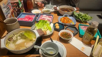 最近天气开始凉,又到了打边炉的季节!今次来到葵芳的「山见台式火锅」😁体验了一场结合了台式风味与港式情怀的吃到饱盛宴。🩵环境与服务餐厅的环境宽敞舒适,装潢简洁明亮,让人用餐时感到放松自在。呢度贴心地提供了围裙,避免用餐时汤汁溅到衣服☺️ 这个小细节非常加分!点餐方式是透过手机QR code,方便快捷。特别有趣的是,店家还提供了沙漏,提醒食客食材的最佳烹煮时间,既实用又增添了用餐的乐趣。🧡汤底与食材作为台式火锅