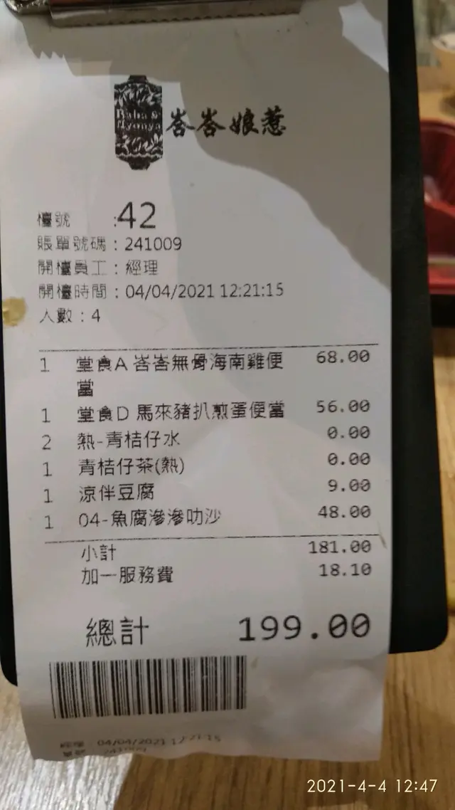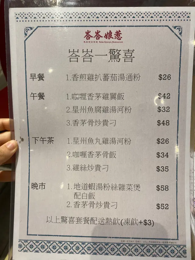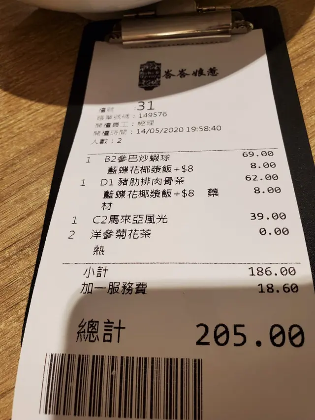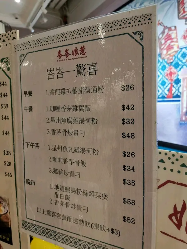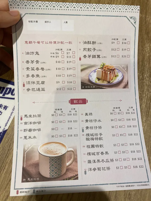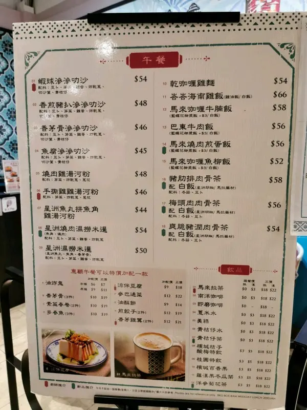話說行左成日街去完大坳門放紙鷂,無端端行咗嚟呢一間野,心諗發達囉假日7:00冇人等嘅?原來係伏。仲要係好大嘅伏。本人對東南亞及馬來西亞菜十分之嚮往,所以有少少心得。一見到呢一間野諗住一定可以試吓,見到個餐牌有個$168晚餐二人餐,上邊可以揀嘅item雖然都好那古怪但係我都揀咗以下幾樣。頭盤可以揀沙巴通菜,同埋怡寶芽菜,點知係全餐最好味嘅一樣嘢就係芽菜。又大碟又真真正正嘅肥芽菜。第二樣小食我揀咗咖喱汁配薄餅,個薄餅係好似百佳買最平嗰種,家用式嘅,雪藏之後拎出嚟煎翻熱佢,唔係話佢唔好食,係好似喺屋企食嘅嘢,所以呢樣唔係最差。主菜嗌左兩樣,豬潤肉骨茶同埋亞參魚煲….!大家估吓邊一個難食啲….先講個肉骨茶,其實OK嘅有五舊豬潤水準可以。嗰個魚煲…..大家知唔知乜嘢叫做亞參?係用酸魚做嘅….呢度個版本就係…..用好似快餐魚龍利柳加埋啲整色整水好似咕嚕魚一樣….食到嘔左出嚟…. 好討厭啲人將自己話係馬來餐….其實係茶餐廳…查看更多