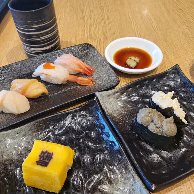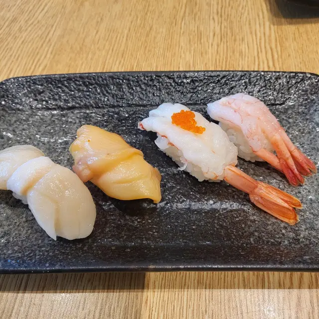 突然想食壽司 就咁入咗嚟食日本嘢😂估唔到啲嘢大部分都幾正:.✨五點刺身盤裡面有:三文魚、呑拿魚、帶子、油甘魚、甜蝦👈🏻每一款刺身都好鮮 完全唔腥,同埋好快就咬完😳😳而我最鍾意係三文魚&甜蝦‼️三文魚係最帶有魚香嘅刺身,而甜蝦真係甜甜地 質地柔軟🦐.✨三文魚壽司 + 火炙三文魚壽司三文魚質地都係同上面刺身一樣,好有魚香 帶有鮮味🍣.✨海螺芥辣壽司🐚 + 八爪魚芥辣壽司🐙呢兩款嘅咬感幾好,不過芥辣方面 係攻鼻刺激….✨三文魚細卷(呢間啲選擇少,真係冇乜特別想食 先係咁叫三文魚🥹🥹)·✨峰玉子壽司玉子係好大個,但壽司飯嘅比例有啲少😗.✨迷你烏冬幾鍾意呢個烏冬‼️烏冬煮嘅時間剛剛好,軟硬度適中 滑身而煙靭,湯底好清甜 好香紫菜味🍜·✨藍莓千層蛋糕🫐一個千層蛋糕有啲藍莓醬喺裡面,幾特別💙千層嘅層次分明,千層皮都唔會太厚,整體係幾配查看更多