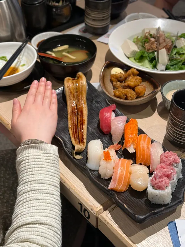 ✨壽司牛肉烏冬定食✨漬物係蓮藕片咬落脆口👍🏻事先有醃過,食落鹹鹹的✨沙律🥗沙律有生菜,粟米粒,車厘茄🌽🥬沙律有黑醋dress 過食落好清新✨是日炸物係炸薯餅🥔🔥有兩件,上菜時仲熱的🔥食落好脆口👍🏻✨牛肉烏冬🍜🐮烏冬份量剛剛好碗上有少量蔥同埋肥牛👍🏻肥牛有三片,唔算真係好肥湯底飲落唔咸烏冬食落少許彈牙🤟🏻✨壽司有十件,一字排開咁樣上菜每件都好新鮮👍🏻白飯都算大舊,食完都飽哂餐廳內部闊落通風亦好充足上菜速度都好快侍應上菜時都會放喺食客面前👍🏻唯一敗北係冇紙巾提供同埋網絡收得比較差要用佢店內wifi 先掃到QR code 落到單侍應態度一般收錢時一句多謝都冇🥲個場冇咩食客,侍應都唔會主動出來帶我入座👎🏻要由廚師提醒先慢慢行出來帶入座食物質素唔錯而唯一嘅服務就只剩得上菜👎🏻冇諗過$120 食個午餐都只係咁嘅服務態度👎🏻👎🏻…查看更多