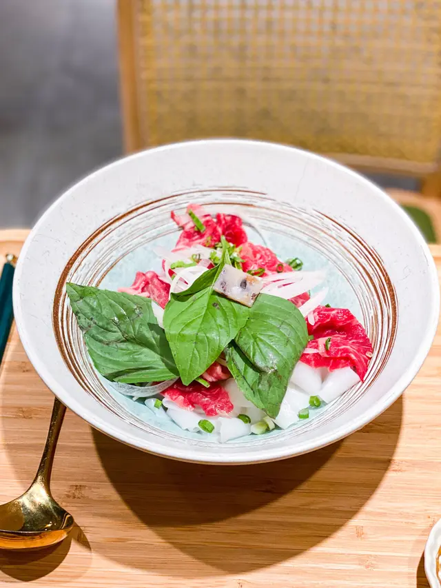 鍾意試新野既我地,又發掘到間新開既越南餐廳,裝修好靚,門口好多打卡位,環境乾淨,卡位坐得好舒服.我地叫左牛三寶手工河,猪頸肉扎肉撈檬,越式炸春卷,香茅红糟肉,熱檸茶,瑰麗紅莓.牛三寳手工河,有牛頸脊,牛坑腩,鲜牛丸,份量好多,牛肉湯底上枱先加落去,好有儀式感,令牛頸脊唔會太熟,岩岩好,口感嫩滑,牛肉味濃.牛坑腩牛味最濃,肥瘦相間,肉質腍中帶爽,鮮牛丸口感爽口彈牙,充滿肉汁,手工河好闊身,非常滑溜,吸埋濃郁既牛肉湯,又唔油腻,真係超好食.猪頸肉扎肉捞檬,猪頸肉香茅味好出,肉質嫩唔乾檬粉Q弹.滑身,淋埋酸酸辣辣既魚露好清新,開胃,超好味.炸春卷,春卷外皮金黃酥脆,好鬆化,唔油腻,配埋魚露包住生菜食,好惹味.香茅红糟肉,第一次食,好有驚喜,炸得非常酥脆,油脂味好香濃.真係送酒一流.瑰麗红莓,非常吸睛,少女味十足,打卡able,玫瑰味十足,酸酸甜甜咁,好好飲!查看更多