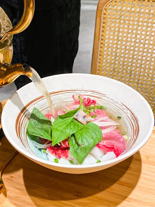 認真諗吓,真係好耐好耐冇嚟過樂富食飯,雖然話細細個有住過喺樂富,但係對呢邊嘅餐廳真係冇乜印象,好彩今日有同事帶路,先至搵到一間咁出色嘅越南餐廳!呢間餐廳裝修好特別,喺街道行其實已經覺得佢嘅門面好搶眼,入都係更加係覺得所有細節都係精心挑選過嘅,當然啦最緊要都係食物都十分之高質!首先要讚一讚,呢度真係好有儀式感,每叫一碗湯河,佢都係搵個好復古嘅水壺倒啲湯底出嚟,啲湯底仲要好濃郁,好清甜。峴港特級崩沙腩配手工河啲崩沙腩好好食,厚切咁樣上,但係完全冇鞋!峴港騸牯牛三寶就有牛頸脊、牛坑腩、鮮牛丸,全部都好好味,但係呢一款我哋就要咗檬粉。我自己就比較鍾意檬粉,因為覺得佢口感比較煙韌。小食方面就要咗個炸豬肉,炸得好酥脆,而且我好欣賞佢個醬汁,令到成件事冇咁油膩。最後都加點咗一個越式法包,好鍾意佢哋嘅pate,加上係即叫即做,個包係烤得好香,呢個我都覺得係呢間餐廳嘅必點item。飲品方面就要咗passion fruit味嘅百子茶同香茅青檸soda,百子茶用嚟打卡一流!當然兩杯都唔會過甜,幾清新,夠refreshing。查看更多