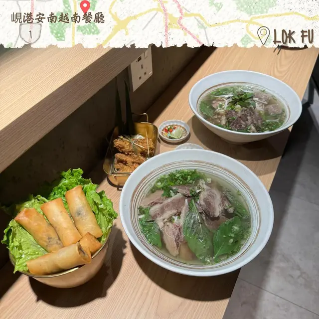 位於樂富既越式餐廳,環境佈置充滿越式風情🇻🇳座位寬闊舒適💁🏻‍♀️🍴峴港騸牯牛三寶手工河($128)三寶包括有牛頸脊、牛坑腩同埋鮮牛丸店員即席倒湯🥣夠哂熱辣辣🔥湯底清甜,手工河粗身大大塊,口感煙韌👄牛丸彈牙有汁,牛坑腩同牛頸脊肉味突出,肉質軟腍👍🏻🍴特色越南法包($68)越南法包製作需時15分鐘,法包外脆內軟,內層塗滿肝醬,味道香濃👅另外法包夾住滿滿嘅餡料,有大大塊腩肉、扎肉同大量嘅蔬菜🥗口感豐富而不膩😋🍴越式手作炸春卷($68)春卷一盒有五條,炸到金黃香脆,餡料飽滿。用生菜包住黎食可以中和油膩感👐🏻再沾上特製魚露,充滿越式風味🤤🍴香茅單骨雞翼($58)單骨雞翼外皮香脆,雞肉肉質幾嫩,香茅味道突出,入味👍🏻🍴脆炸香茅紅糟肉($68)紅糟肉份量都幾多,沾上薄薄既炸皮,肥瘦均勻👄食到淡淡紅糟嘅酒香味,係一道幾香口嘅小食😆🍴峴港椰子咖啡($68)椰子咖啡賣相幾靚,咖啡側邊放置咗一棵小椰樹,椰子同咖啡嘅味道幾夾👍🏻兩者味道平衡👐🏻唔會好甜,唔錯~🍴香茅青檸梳打($38)香茅配青檸係一個唔錯嘅配搭,酸酸甜甜,清爽開胃😎查看更多