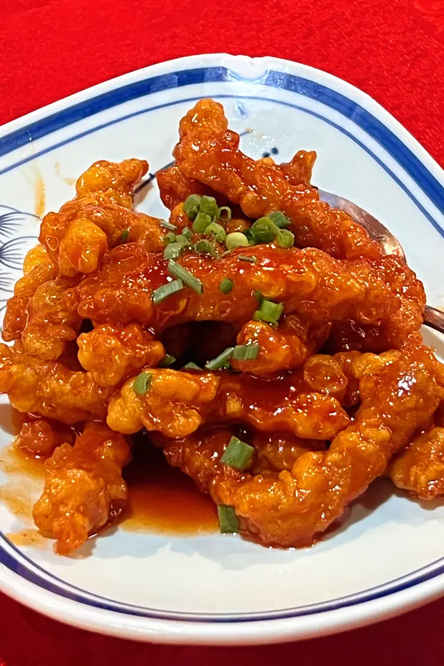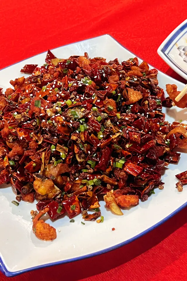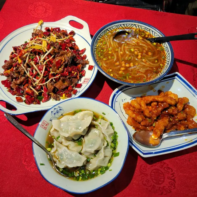 走到正街近頂這算偏的位置,有著一家很受歡迎的四川菜館,用充滿新年氣氛的鮮紅桌布及古風裝飾。平日的晚飯時段都幾乎坐滿。跟友人點了四道菜,有辣有不辣都試試,每款份量都不少。糖醋里脊 $118先來酸甜的葷菜,成品像咕嚕肉或生炒骨的做法,嫩豬里脊肉包裹一層糖醋粉漿,入口酸酸甜甜味道醒胃,肉質嫩中帶爽。無論作為前菜、很好下飯的主菜或是解辣用的小食也相當適合。份量不少,我倆從頭吃到尾,作為不同用途我們都嚐遍了,很喜歡這一味。干煸牛肉 $168上菜一大盤鮮紅色真的十分誇張。大量辣椒乾、花椒、芽菜及蔥蒜中佈滿牛肉片,超過二人份量。一整盤乾爽不油膩,牛肉片肉質柔軟、既香又惹味,沾了辣椒籽愈吃愈辣,夠刺激又過癮。在一大堆食材中尋找牛肉片,也是吃這道菜的一種樂趣。重慶酸辣粉 $58最後我們沒有點白飯,因為想試試他們的酸辣粉。煮熟至半透明的紅薯粉質感滑溜、煙靭又彈牙真的很好咬,配上酸中帶微辣的湯讓人一口接一口吃。這個沒有干煸牛肉那麽辣,算是溫和。清湯手工餃子 $88友人不太擅長吃辣,所以多點一道不辣的菜式。一碗共有八隻清湯水餃,每隻都巨型有重量,餡料為韭菜豬肉末,全部爆餡有湯汁,頗為飽肚。最後店家還送了桂花冰粉,它的神奇之處是明明冰粉是透明啫喱狀,但一入口就能立即解辣。加上桂花就更清香及refreshing~ 為相對濃味的晚餐作結尾,合適不過。查看更多