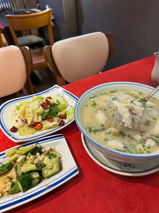🕖時段-星期五中午放lunch時間去差唔多坐滿 大人同學生都有間餐廳好近西營盤站C出口 港島其他地方過來都好方便_▫️午市二人套餐A $248二人套餐包左1個涼菜 1個魚/牛 1個熱菜 2碗白飯同2個飲品▪️[涼菜] 蒜泥白肉小食份量2個人share剛好 蒜泥無譚仔咁重手但好夠味▪️[招牌] 酸菜魚片叫左BB辣但對我來講都頗辣 (平時食10小辣)魚片好滑 如果2個人來都可以嗌set share食 雖然普通lunch set 只係$70幾 但就無酸菜魚▪️[熱菜] 酸辣土豆絲勁大碟 呢個反而唔係好辣 酸酸地食幾開胃查看更多