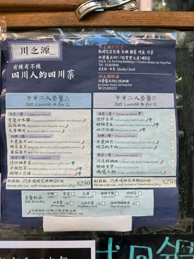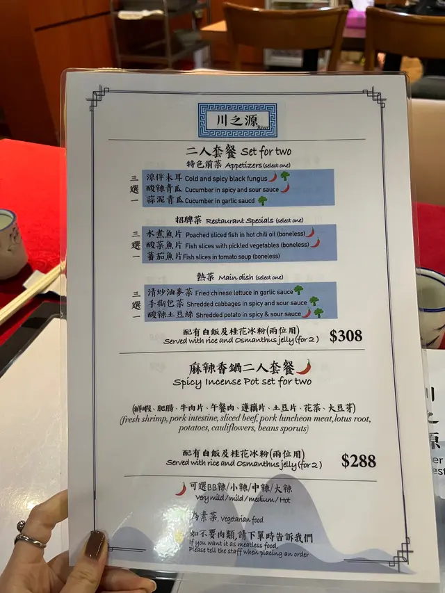 川之源, 在西環有兩間分店, 一間樓上店, 另一間則是在西環長命斜旁邊, 就算由地面上來都有電梯, 所以不用太過擔心 😆 況且現在有地鐵, 從地鐵C出口乘坐升降機再走路就更方便 😁餐廳裝潢有傳統中式風格, 用上紅色枱布, 由於新年期間, 除了門前的盆栽外, 還掛上新春燈籠, 附各種賀詞, 滿有氣氛的! 😊 雖然空間不大, 座位仍然很寬敞, 職員態度也很好。午市二人套餐 $288二人套餐分別有前菜, 主食, 熱菜, 另送白飯和甜品。涼拌木耳木耳爽口, 酸酸辣辣, 作為前菜很開胃 ☺️ 不過卻是全個餐最辣的, 吃不到辣的就別點這個為妙。蕃茄魚片其中一道不辣的菜餚, 蕃茄煮成蓉, 蕃茄味道溶入湯中, 湯底清甜帶酸, 有不少青蔥和薑片用來中和腥味。 餐廳奉上一個大碗盛裝, 份量驚人, 有多塊桂花魚片, 嫩滑無骨, 鮮味十足! 😋 送飯一流, 作為一個蕃茄控這個菜絕不能錯過!! 🥰手撕包菜椰菜十分清甜, 加入辣椒和花椒, 微微辣口, 避免吃到花椒就不會有麻痺感 😆重慶辣子雞 $158跟之前在深圳吃的一樣, 一大盆雞件跟大量辣椒, 花椒, 八角, 香蔥混在一起煮成, 驟眼看會被嚇到 🥴 實際上是可以接受的, 吃得多川菜後接受辣的程度都高了 😬 雞肉切粒, 是來自不同部位的, 部份會帶骨, 經過油炸非常脆口惹味!麻婆豆腐 $88四川款式麻婆豆腐, 有別於港式製作, 加入豆鼓, 青蔥, 黑椒, 花椒, 自家製豆瓣醬, 醬汁濃稠, 比港式麻婆豆腐味道更濃, 能做到麻, 辣, 香, 嫩 🤤 同樣送飯一流! 桂花冰粉所有餐都會奉送這款甜品, 像啫喱般透明清澈, 口感比涼粉更清涼爽口, 吃了一堆又麻又辣的四川菜, 再品嚐這款甜品簡直一流! 😚這段時間都經過吃四川菜, 無論在香港還是深圳, 開始發現四川菜的美味之處 😌 這間餐廳提供正宗四川味道, 而且十分貼心 🤗 菜餚有不同辣度, bb辣, 小辣, 中辣, 大辣等, 能夠迎合各種不同口味的客人, 也有不少不辣的菜式, 當然如果四川菜走辣就未免失去原本風味。查看更多