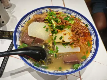 依间其他分店我都有食过, 佐敦最近再去, 我反而觉得味道比以前更好, 今日过来深水埗, 不如试下, 但地方都几迫下, 比安排四人方枱, 由于拿住野, 又无乜位放, 唯有孭住环保袋来食🤣🤣望下餐牌, 款式大致和佐敦差唔多, 叫左酸辣幼薯粉, 要左BB辣, 加左罗白加左猪肚🐽丝加左猪红, 等左一阵店员送上, 卖相都唔系好差, 饮左一口汤, 无酸味无辣味, 剩系饮到偏咸🫤😕, 夹起薯粉, 份量都唔少, 煮得都刚刚好, 但由于汤底味道偏咸, 所以浸左汤的粉就变得不是太好食😂, 猪红味道还好, 但太细粒, 猪肚丝🐽又系切到劲幼, 一d咬落去的质感都无, 味道都唔算叫好食😌, 罗白又以为透明会好味, 点知食落系未淋透, 食到有d硬同老的感觉😐, 不过叫做50多元食得饱🤣但服务就不可有太高要求, 见到有d少帮衬的客户, 他们未拿定主意叫东西, 一个金短发的店员, 解释期间有点不耐烦🫣…查看更多