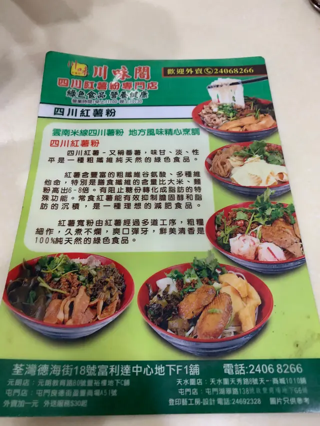 黎荃灣按摩前去醫一醫肚先忽然想食以前常食的熱拌紅薯粉,記得讀書在荃灣補習,一放學就同埋同學仔黎呢度食晏,所以由小食到大,可以話充滿讀書時的回憶。有湯同撈粉揀,不過我偏愛撈粉類,出街好怕食湯米粉米線,我一定會濺到件衫周圍都係,好麻煩!除非我個日著左深色衫喇😂😂所以我唯有放棄湯取其撈粉方便!唔止咁,撈粉呢度都好出色!紅薯粉更是必點!無湯熱拌紅薯寬粉加配大腸,魚腐同雞肉絲加上大量秘制炸肉醬,花生,芫茜撈埋一齊,酸酸地辣辣地,十分開胃無湯熱拌紅薯中寬粉,中寬薯粉較滑,我個人必點腩肉,海帶,腩肉夠惹味,連埋薯粉一齊食,吸收曬腩肉汁的精華,仲有脆卜卜的花生粒加分唔少!好味!偶爾會想念川味閣的熱拌薯粉,不止它的美味還有讀書時的回憶!查看更多