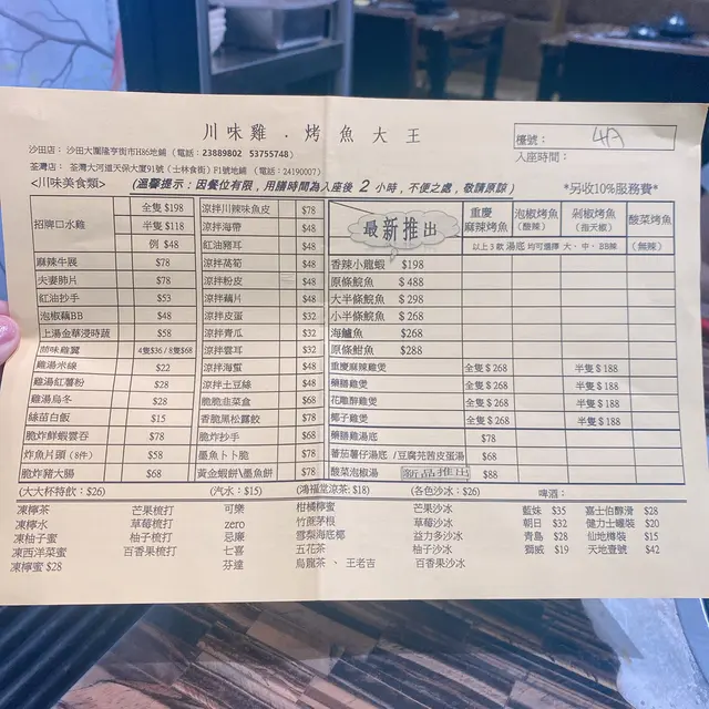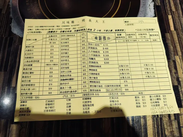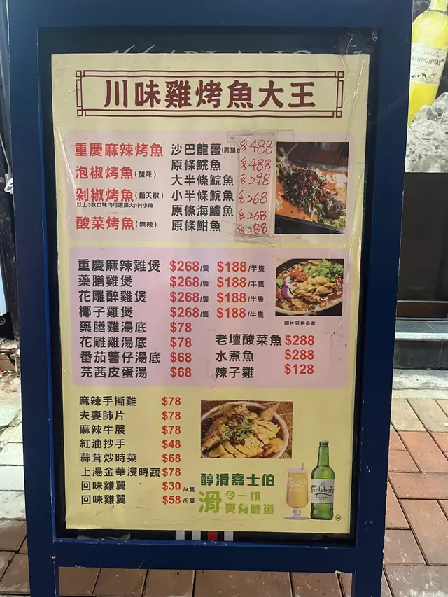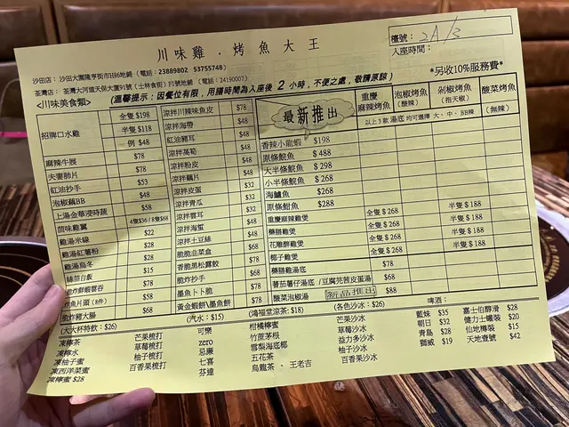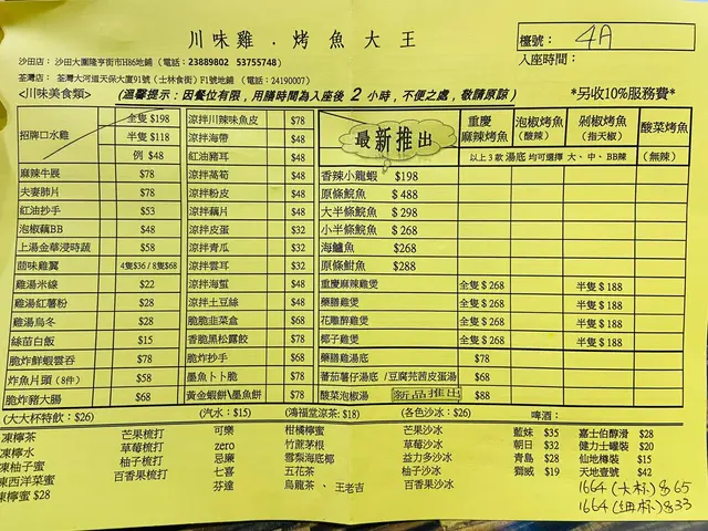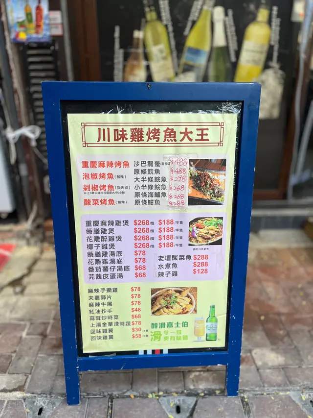 川味雞烤魚大王 (大河道) (荃湾) 网址: https://s.openrice.com/QrLS0ilS100 地址: 香港荃灣大河道91號天保大廈地下F1號舖 电话: +852 24190007