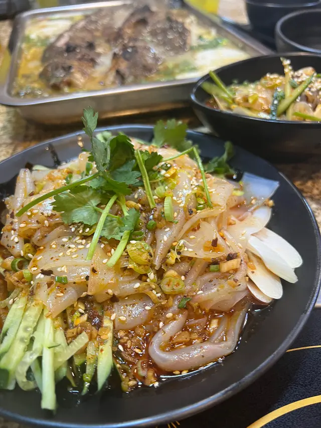 鋪頭面積較細,好處係開得比較夜,可以來食宵夜。酸菜烤魽魚湯底味道充滿蒜蓉香味,叫左少辣,真係微微辣,恰到好處唔會太霸道。味道溫和得來又幾惹味。條魚係煎過嚟,魚皮帶有煎過嘅香味同口感。魚肉好嫩滑啖啖肉,易食冇咩骨。整體嚟講條魚係好味嘅。牛肉:一般打邊爐本地牛頸脊嘅質地,不過唔算好嫩滑。小食:)炸墨魚片:口感爽彈,有墨魚粒粒口感,好味。:)撈粉皮 & 撈海蜇 & 撈皮蛋 :麻辣撈嘅味道,醬汁味道差唔多,惹味得來又唔太辣,唔錯。❌串燒類:嗌咗頗多唔同嘅串燒,有牛舌、牛肉、羊肉、香腸、雞翼等等。全部都係一樣味嘅。全部都係充滿孜然粉嘅味道,幾鹹。而且所有食品都炸得好乾。冇咩係好味。串燒類唔推介。整體來講,呢間嘅烤魚同小食係好味到可以再來嘅程度,但串燒就唔推介啦。希望餐廳有緣睇到可以改善下。查看更多
