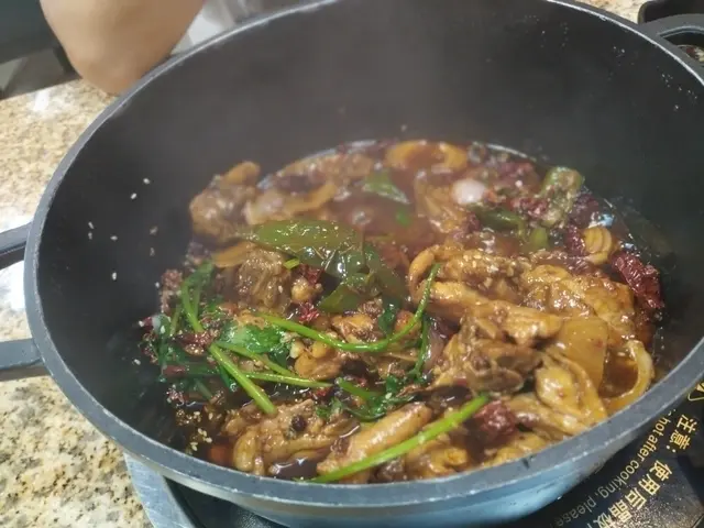 用餐時間(7:29pm dinner)前菜叫幾個串燒先串燒蒙古羊肉串$18 香濃羊肉味,一口啖啖肉,啱晒愛羊之人 🐑 五花腩肉$12 薄薄花腩肉燒到好脆,而且油香🐽 川燒豆乾$12 豆乾表面灑上一層辣粉,好惹味涼拌雲耳$32 爽脆雲耳配合靈魂醬汁(香蔥、雲耳、重蒜頭、薑粒、辣油芝麻) 令人回味無窮,勁開胃❣️醬料區乾淨衛生,佢會用膠蓋冚住,真係好少地方會做到咁。重慶麻辣雞煲(半隻)$188用芫荽、大蔥、青椒、洋蔥、紅蔥頭、乾辣椒、花椒、薑起鑊,兩個人雞煲叫半隻雞,個人鍾意佢放大量蔬菜,索晒啲雞煲醬汁,好濃味,雞件算大件靚仔。火鍋配料點少得特級雪花肥牛(細份)$108 花紋好靚,肥瘦適中。自製韭菜餃$58 粒粒飽滿,食材餡料好新鮮,老闆娘話大部份餃子都係自家製👍🏽墨魚滑/ 蝦滑雙拼$82 墨魚同蝦兩種海鮮滑一次過試晒,鮮味無窮。油麥菜$33 好少地方啲蔬菜會洗得咁乾淨,要俾個叻佢。萵筍$42 吸晒湯底嘅味道,同炸魚皮$35 一樣都係食雞煲打邊爐必嗌之選 🥬靚女老闆娘好友善好好傾☺️ 下次會再嚟食飯試埋個魚查看更多