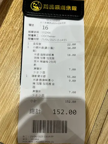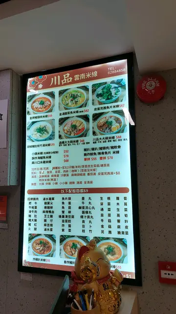 餐厅:川品云南米线地点:大角咀菜式:云南米线餐牌:米线、特色小食、饮品,落单扫QR code。小锅米线 $34 米线可转米粉,公仔面,蔬菜底,或者加钱要薯粉。米线份量一大碗,又滑又淋,好食过薯粉。汤底可选酸麻辣汤,麻辣汤,沙嗲汤等。呢个我拣左番茄汤,好香甜。可选辣度,配菜走唔走,或者加唔加配料。最少选两𩠌。滑牛肉 $9滑牛肉一客多件,唔薄唔厚,算嫩麻辣鸭血 $9麻辣鸭血一客三件,唔会太辣,都好味。猪软骨薯粉 $55加$3我加$3转左薯粉,好烟韧滑溜。其他配料有爽脆芽菜同肉碎等,薯粉捞埋芫荽葱同食好香,份量足有一大碗。猪软骨有三件,都算淋。沙嗲汤底进化左系云南version,味道酸酸辣辣。鸡肉串烧 $20鸡肉串烧一客三串热辣辣上枱,肉细细粒,连鸡皮烧,算嫩,配有甜酸酱,垫有一片生菜。Coke Zero $7,冻柑桔蜜 $8饮品配有纸饮管。冻柑桔蜜柑桔味好香,甜度适中。总括而言,一碗大大碗米线呢个价钱都算抵食。平日两三点都仲有好多食客。餐厅装修新净,光猛干净。…查看更多