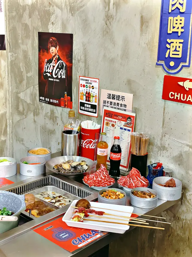 趁天氣仲涼涼地同朋友去食個麻辣邊爐🌶️🍲餐廳裝潢有種懷舊風(๑・̑◡・̑๑)環境乾淨企理而且任飲任食套餐黎講食物質素好高 值得一試🤪👍🏻🍢新鮮農場靚牛串串套餐 • $328配 牛頸脊/牛小排/伊比利亞黑毛豬肋條我同朋友就揀咗 牛頸脊 同 牛小排🐮兩款都好食 夠新鮮😎油脂均勻 肉味濃!牛小排就比較厚身依個餐仲會包埋時令海鮮 同 雞煲 勁豐富🦐時令海鮮 有 海蝦 蜆 鮑魚超推介 蜆!! 每粒都好飽滿厚肉🤩🤩🐓雞煲個醬好惹味🤤雞肉好入味 份量好多 絕對夠哂兩個人食😈🍲火鍋鴛鴦雙拼鍋+$30茶底麻辣鍋🌶️ 配 養生菌王雞湯🍄茶底有 三款🫖 普洱茶 ~ 解膩🫖 菊花茶 ~ 清熱🫖 高山紅茶 ~ 回甘養生菌王雞湯 – 推介🌟好足料 入面有好多雞件同菇!🤪煲耐少少個湯就非常濃味淥蔬菜一流🥬🥦🌽自取區有多款野食肉類 海鮮 蔬菜 麵類 同埋串串全部任食 特別推介🌟🌟๑ 川婆婆紅薯粉🥢好煙韌 配麻辣鍋 入哂味 正😝๑鴨血🦆口感非常好 好滑溜溜😼唔會一夾就散๑墨魚 魷魚🐙🦑新鮮爽口 兩款都好食๑鵪鶉蛋🥚平時打邊爐都唔係成日有得食蛋迷可一戰🤣🤣🍹飲品有各款汽水 茶🥤🫖玻璃樽更添懷舊感😙📍尖沙咀寶勒巷26-36號地舖查看更多