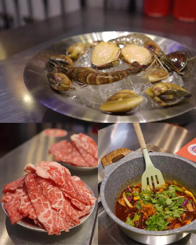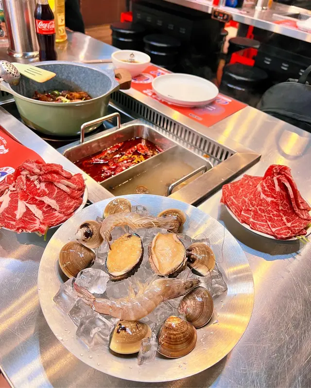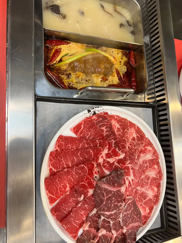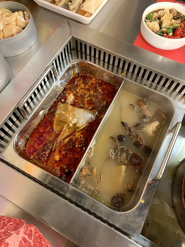*此餐廳收取加一服務費。新鮮農場靚牛串串套餐100分鐘茶底辣鹵串串火鍋放題(兩人$656),牛小排脂肪平均,牛味濃厚。牛頸脊(跟餐$0),肉質嫩滑,肉味厚重。鴛鴦雙拼鍋(跟餐$30);麻辣湯底,辣度3分,內有高山紅茶茶包浸泡,飲落帶有淡淡茶香;養生菌王雞湯,飲落有鮮味,內有姬松茸、杏鮑菇。時令海鮮(跟餐$0);鮑魚,肉質彈牙,食落好新鮮;鮮蝦,肉質爽口,味道鮮甜;大蜆,肉質飽滿。麻辣雞煲(跟餐$0),醬汁稠身,雞件份量多,容易掛汁,味道正宗。鴨血(跟餐$0),口感滑溜。芫荽麻辣牛肉串(跟餐$0),芫荽令牛肉食落更加香口。苕皮(跟餐$0),類似粉皮,口感煙韌,不過比較厚身,食落好入味。查看更多