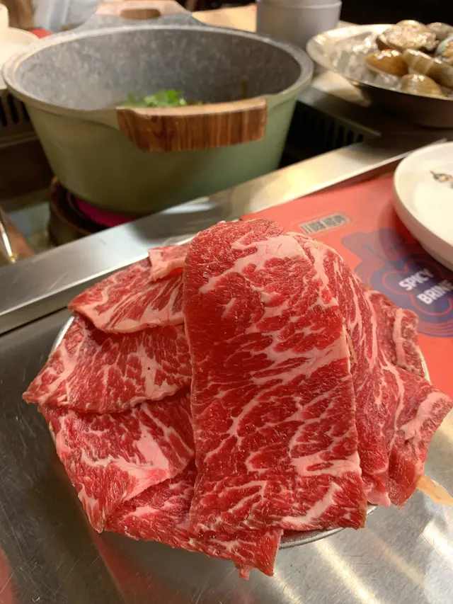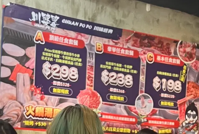 朋友想食麻辣雞煲🌶️就搵咗間想食好耐嘅川婆同佢尋晚去食。一去到坐低,先發現原來佢地已經轉咗menu… 無咗雞煲,而係做任食火鍋同串燒… 一心想食雞煲嘅我地係有啲失望😞… 但一場嚟到,啲野食望落都唔錯,咁我地都諗住試下我地嗌咗中價位(B. $238)嗰個餐,有任食安格斯牛板腱、牛肩胛同封門柳。除咗打邊爐都可以同時喺隔離燒串燒🍢,但我同朋友都唔太想燒,我地就淨係食邊爐碟肉上得好快,一上就有少少驚豔咗我… 呢個價錢有得任食呢個質素嘅牛都真係唔錯👍之後再嗌嘅都無話質素跌好多而任食區方面都有幾多選擇。唯一唔係咁好係衛生情況可以改善下…😣最後我同朋友都覺得雖然食唔到想食嘅雞煲,但係呢個邊爐都好抵食好好味😋希望佢之後出返雞煲🥲查看更多