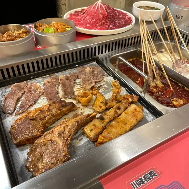 又起辣癮,這次去了川婆婆吃麻辣燙,開業多年,選擇多味道依然很不錯,這次點了鴛鴦鍋和鐵板燒,肉類串串蔬菜任點,絕對過癮😝。火鍋放題 $298@1 鐵板燒+$30 鴛鴦湯底+$30湯底點了茶底麻辣和胡椒豬肚雞湯,前者不算很辣,但麻味十足,娃娃菜吸滿湯汁再吃一流。後者鮮味之餘,內有雞件和豬肚,兩款各有特色😍。任點的肉類也算新鮮,牛小排牛肩頸不是薄薄一片Hea 人那種,給得很大方。串串和蔬菜的選擇也多,豬牛羊肉串魚皮餃蟹柳各式丸類響鈴芋絲應有盡有,燒烤算是錦上添花吧,孜然羊架肉厚也不羶,其他肉類沒有調味過,所以烤完也沒什麼味道,感覺上麻辣燙就很夠吃了!查看更多