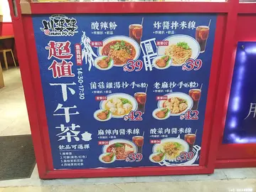 !发现点的全部都大大份,经济又实惠,发现尖叫的价钱,见到餐牌下午茶只需要39起,简直抵到烂!每个份量都超级大份,然后又有早鸟优惠,中午时段11点半至12点半之内埋单,居然还有9折!真的良心小店,感动地点了凉拌土豆丝和红油抄手做小菜,红油抄手真的有虾在内,汤面则点了药膳醉鸡汤粉及椒麻鱼汤粉。药膳醉鸡汤粉,包括了木耳杞子红枣作为汤底基础,鸡肉带有超吸引的酒香,份量不错地有鸡小槌、鸡胸肉以及鸡翼,更有白菜伴宽面,营养十足。然后椒麻鱼汤粉亦是大大碗地包括了超多鱼片,底基有切片娃娃菜、豆皮、芽菜、海带丝索汁,同样是宽面但不一样的惹味感觉!另外重点的是这里的葱及香芫茜量多,谁说配菜不重要?香的懂的懂!…查看更多
