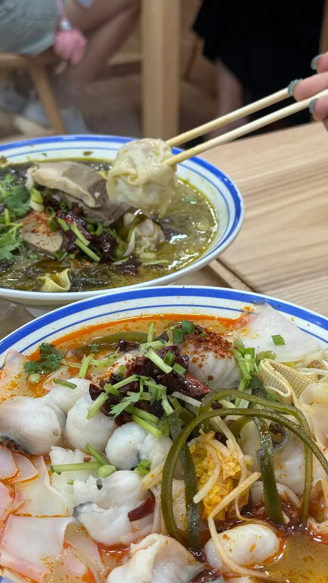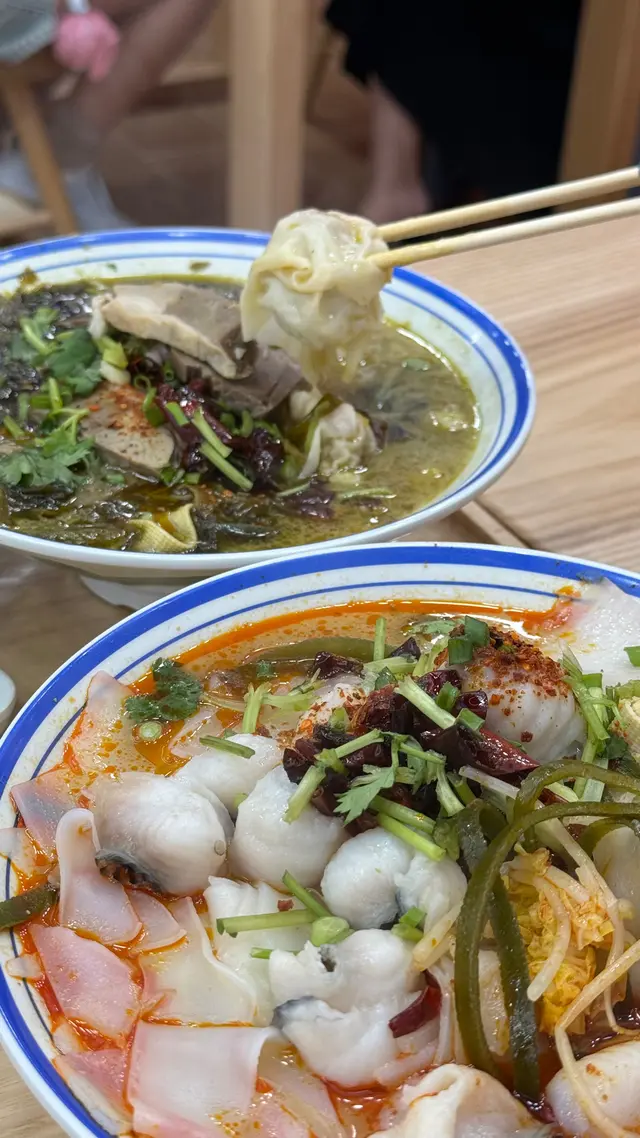 !發現點的全部都大大份,經濟又實惠,發現尖叫的價錢,見到餐牌下午茶只需要39起,簡直抵到爛!每個份量都超級大份,然後又有早鳥優惠,中午時段11點半至12點半之內埋單,居然還有9折!真的良心小店,感動地點了涼拌土豆絲和紅油抄手做小菜,紅油抄手真的有蝦在內,湯麵則點了藥膳醉雞湯粉及椒麻魚湯粉。藥膳醉雞湯粉,包括了木耳杞子紅棗作為湯底基礎,雞肉帶有超吸引的酒香,份量不錯地有雞小槌、雞胸肉以及雞翼,更有白菜伴寬麵,營養十足。然後椒麻魚湯粉亦是大大碗地包括了超多魚片,底基有切片娃娃菜、豆皮、芽菜、海帶絲索汁,同樣是寬麵但不一樣的惹味感覺!另外重點的是這裏的蔥及香芫茜量多,誰說配菜不重要?香的懂的懂!…查看更多