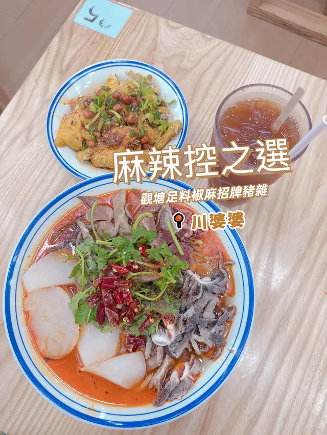 川婆婆係香港已經經營咗十幾年上年開始除咗觀廣之外 仲進駐埋東廣場1樓新打造嘅Food Court 我同同事都經常嚟食LUNCH川婆婆由最初嘅麻辣燙、川菜 到依加發展埋少有嘅新鮮豬雜粉、部位牛牛肉粉等就連近年好熱捧嘅特色雞湯系列都有 老闆一直都係度擴展 務求迎合到所有港人嘅口味 無論粉面飯 全部都有得選擇👍🏻🥢酸菜肥牛中辣紅薯細粉同事嘅餐 眼見肥牛認真多🥢牛骨髓牛胸爽酸菜金湯BB辣紅薯細粉牛骨髓同牛胸爽平時打邊爐食嘅多 呢度LUNCH都可以過一過口癮牛胸爽我就每次都必點 今次就第一次搭配牛骨髓 估唔到牛骨髓份量都咁多 絕對夠食 BB辣唔會好辣 呢個組合味道非常好🥢手拍青瓜雲耳二十蚊都唔洗嘅小食 飲品都係加$8大大杯…查看更多