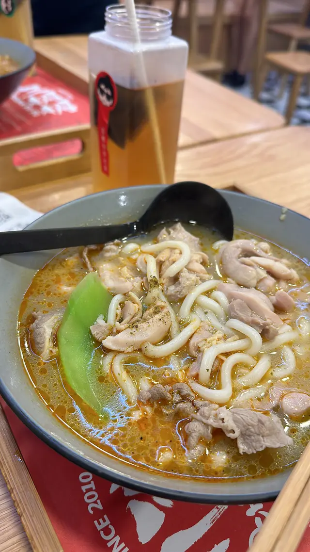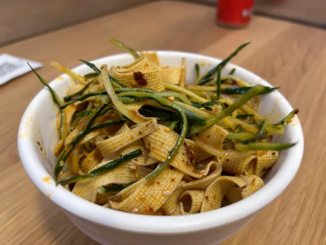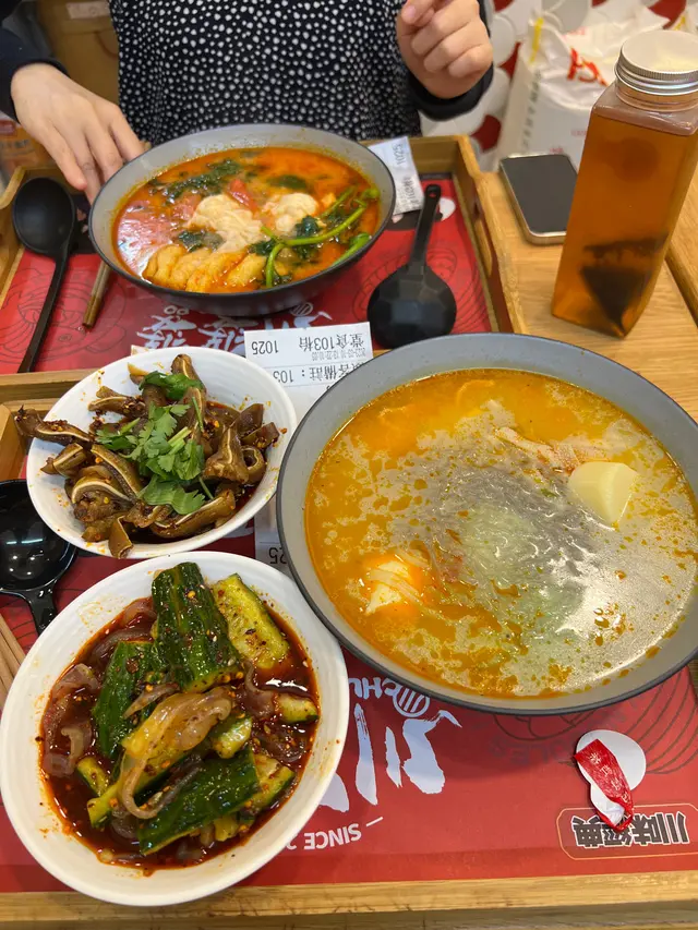 這是一間帶有明顯四川風格的快餐店。首先是水煮肥牛米粉,湯底味道濃郁,肥牛肉片鮮嫩可口,米粉口感適中。但可能有些許油膩,建議店家在烹製時注意控制油脂的分量,以保持菜品的清爽口感。接著是雞絲拌麵,麵條口感彈牙,雞絲鮮嫩,整體味道還算不錯。但調味方面可能略顯單一,希望店家能夠在調味上多下功夫,使得菜品更加豐富多樣。最後是麻辣豆皮,豆皮口感爽滑,麻辣味道濃郁,是一道辣味小吃的不錯選擇。總的來說,這家四川風格餐廳的菜品整體表現還算不錯。…查看更多
