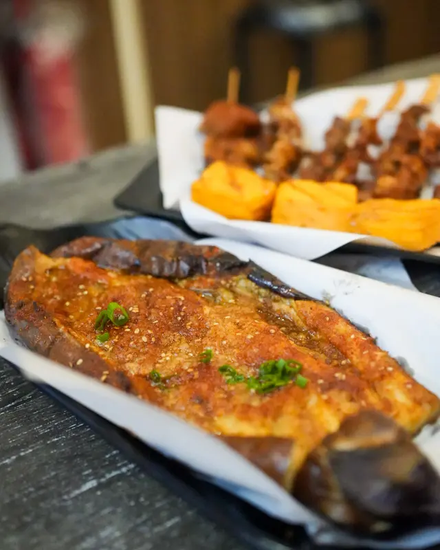 為食🐑鍾意食串燒,今次喺荃灣發現咗呢間串燒店,串燒主打川式風味,但調味拿捏得恰到好處,唔會死鹹死辣。點咗小辣,確實係小辣,好啱想淺嘗川味嘅朋友,其中我最鍾意食嘅係雞皮同雞軟骨!🤍 墨魚咀 $25口感爽彈鮮味十足,燒得時間控制得剛剛好。🐔 雞軟骨 2串 $28金黃香脆嚼勁十足,係我每次必點嘅心水之選!🐔 雞皮 $28燒到焦香脆口唔油膩,食落卡滋聲真係超滿足。🐃 牛舌芯 $45牛脷使用平時茶餐廳嘅厚切牛脷,軟腍多汁,使用簡單調味已經非常之惹味,啖啖肉!💚 虎皮椒 $13外皮微焦帶點虎紋,內裡清甜多汁好開胃。🌽 粟米 $35燒到金黃香甜又多汁,加咗少少味粉,但食落仲保持到原汁原味。🍆 蒜蓉茄子 $38茄子真係原條好大條,上面鋪滿金黃蒜蓉香氣撲鼻,茄子肉嫩滑又多汁,最重要唔會燒到乾爭爭!🥤 可樂 $13🍹 檸檬茶 $12✨ 整體串燒味道都唔錯!現場所見,外賣單好多,睇嚟深受街坊歡迎。下次想喺屋企輕鬆食,呢度絕對可以列入外賣首選!…查看更多