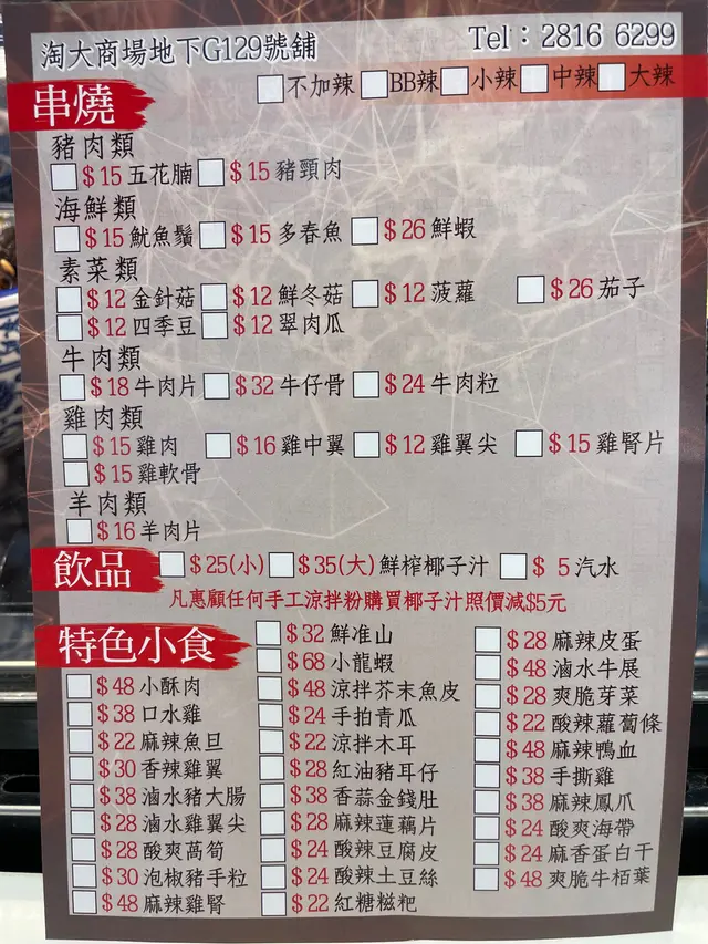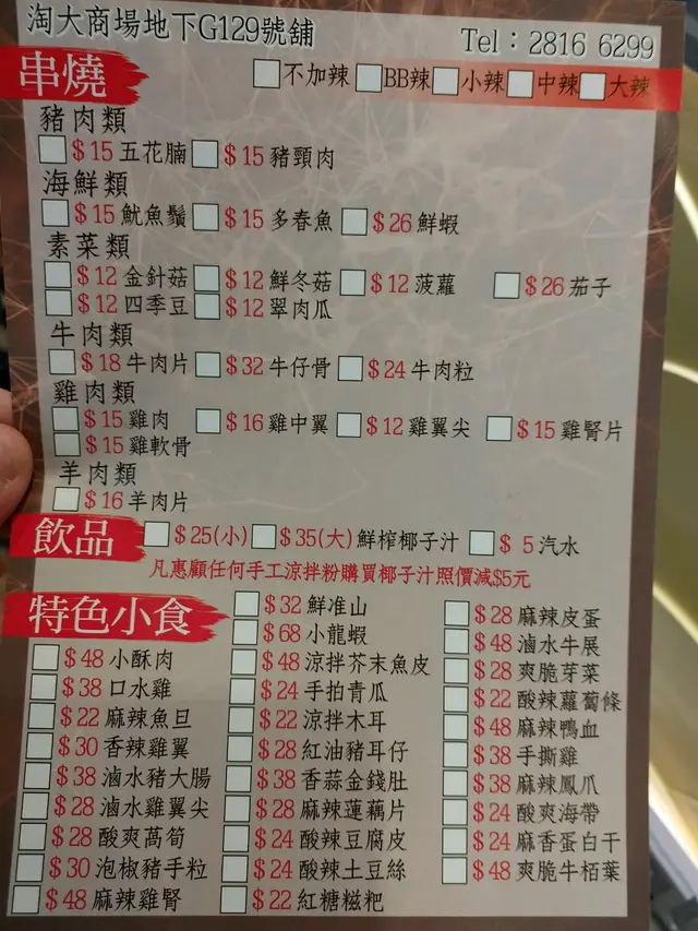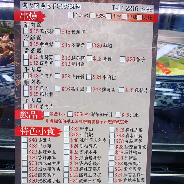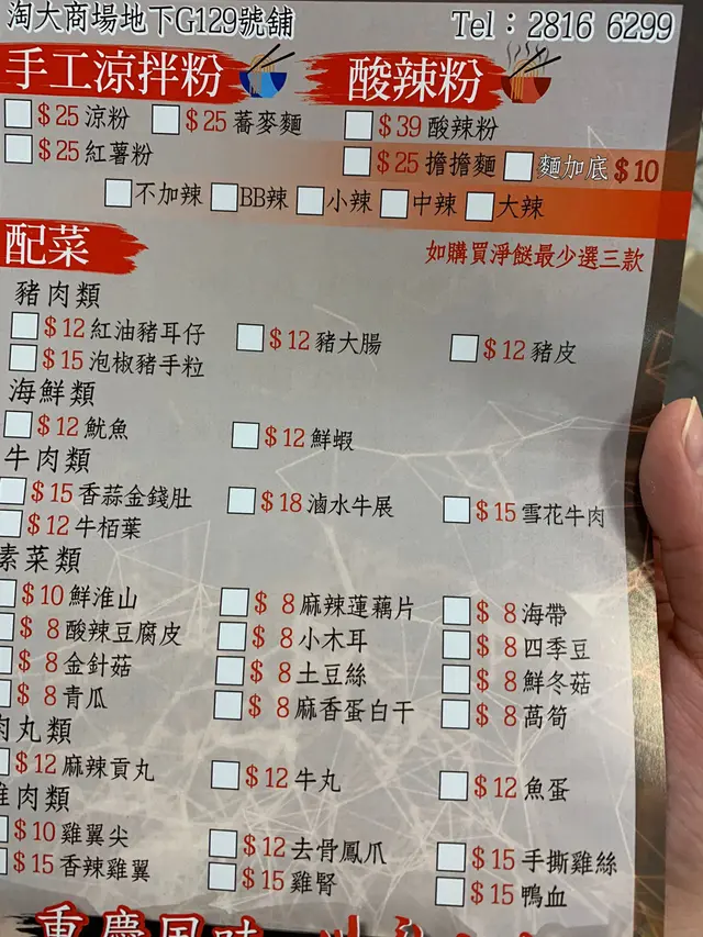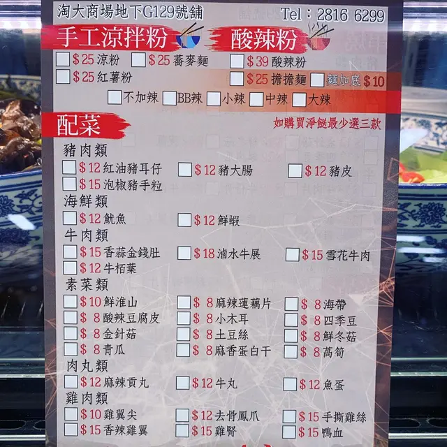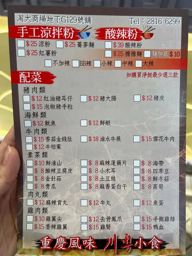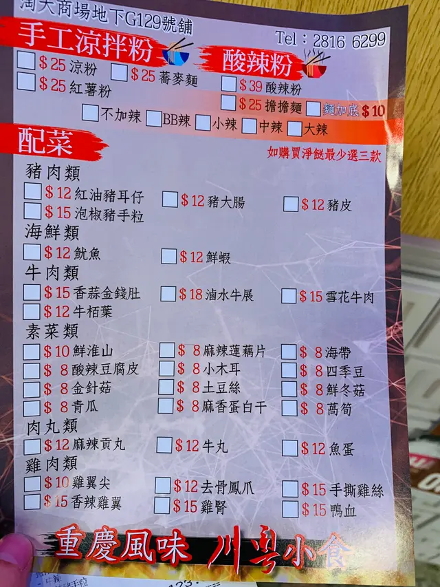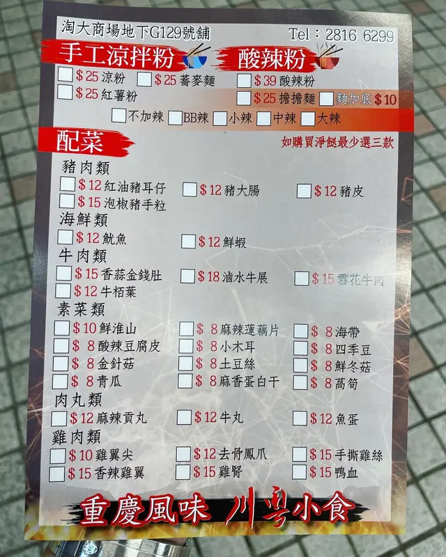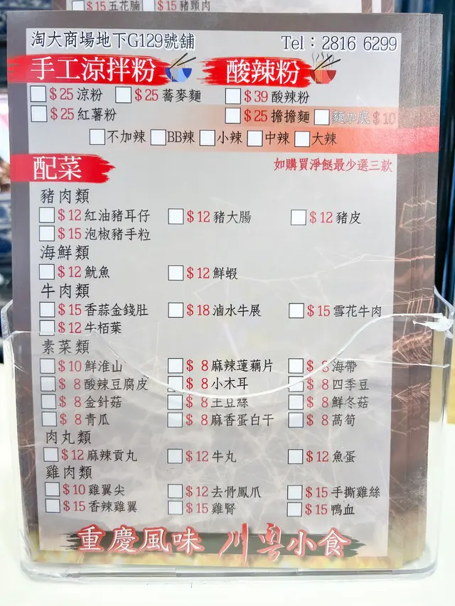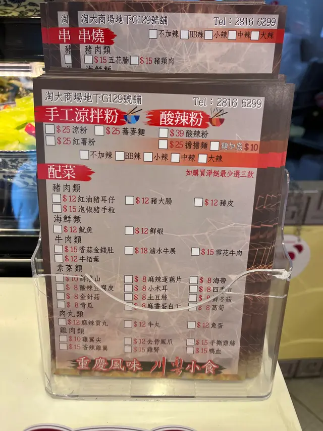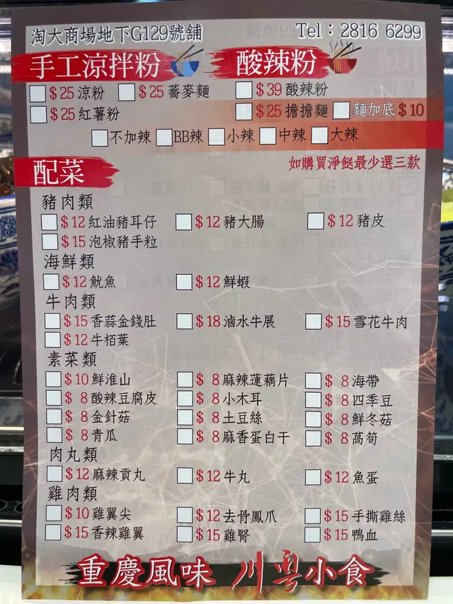 川粵 (淘大商場1期) (九龙湾) 网址: https://s.openrice.com/QrLS01dWB00 地址: 香港九龍灣牛頭角道77號淘大商場1期地下G129號舖 电话: +852 28166299