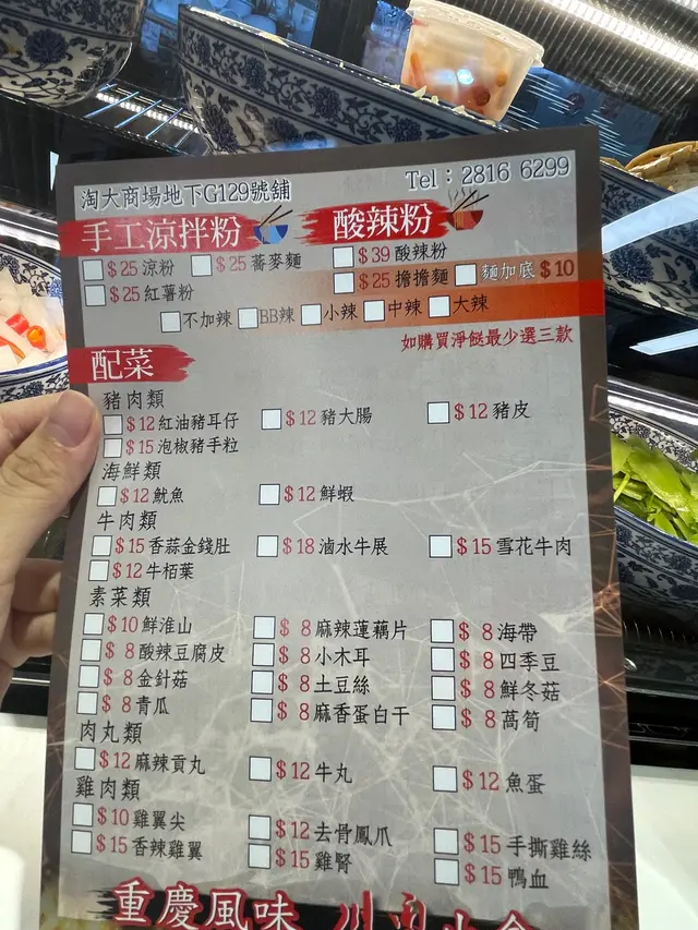 呢間店喺淘汰都開咗一段日子 今日終於叫咗嚟試下1. 酸辣粉套餐 (三款小食+飲品) $80咁我叫咗BB辣 配手撕雞,土豆絲,泡椒豬手酸辣粉入邊有菜脯,肉碎,芫茜 (應該仲有花生同蔥 但我唔食所以冇要!)味道酸酸地BB辣完全唔辣最重要係好夠味 好多時候一叫小辣 味道就會淡咗好多 呢間就啱啱好 手撕雞 肉質幾嫩 但冇咩味 就少少鹹鹹地咁土豆絲入邊仲有中芹 紅蘿蔔絲切得好幼 但仍然仲好脆而味道我諗醃同手撕雞嘅醃料一樣 所以我食唔出咩味又或者酸辣粉太重味/我叫BB辣 所以呢兩款小食冇咩味泡椒豬手入邊有三件 微辣有淡淡嘅泡椒味但小妹對泡椒有啲反感私心唔太喜愛整體而言味道正常 份量好足最鐘意就係酸辣粉而價錢就就冇咩參考價值因為我用平台叫嘅外賣直接去叫就真係唔知咩價錢啦可惜就係佢冇堂食見佢有埋串燒如果有得堂食 即叫即燒即食應該幾惹味道…查看更多
