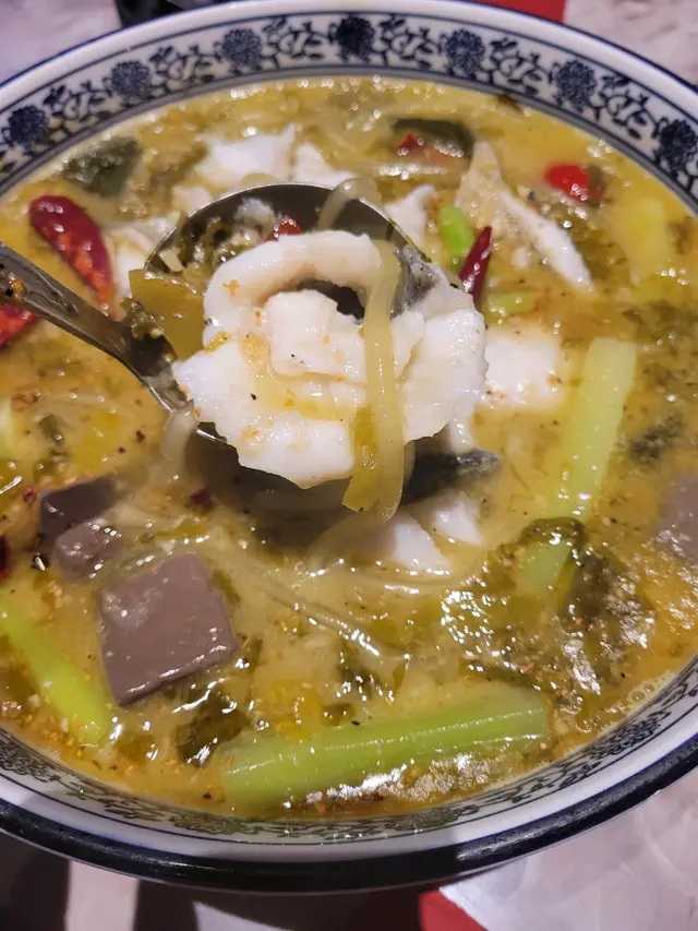 琴日平日12點去咗食酸菜魚。係返工時間,但係都有五六枱人客, 算係有人流。叫咗個唔辣嘅酸菜魚, 另外再叫咗個招牌炒飯。上菜速度正常,酸菜魚裏面已經有粉,個粉係粗身已經入晒味, 同埋好煙靭, 係會想再添嗰種😋。啲魚佢有分普通同埋桂花魚揀, 今次叫咗普通, 佢味道十分濃郁,老人家就會覺得鹹咗啲。同埋個魚會連埋啲魚皮感覺好新鮮, 二人份量$268喺朗豪坊嚟講唔算貴。桂花魚就328下次會試吓。佢嘢飲做緊第二杯半價, 本來想試水果茶, 但可惜唔飲得凍嘢。會有茶芥, 佢嘅茶杯係好似功夫師傅用嘅會有個蓋要慢慢飲先至可以格到啲茶渣, 因為佢啲茶葉全部放晒落個茶杯度,所以有少許麻煩,但可能係特色。埋單$468二人用, 呢個價錢喺商場裏邊都叫可以接受。呢度氣氛好好, 靜靜地光線又調暗, 係舒適嘅地方。查看更多