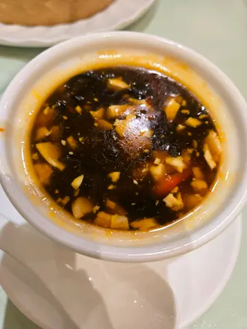最近吃肉太多,想吃清淡一点,又想让孩子品尝一下素菜的滋味,我们逛街看电影后便来这儿吃东西。这儿环境清幽,晚市也颇多人,感觉有不少街坊捧场客。而且楼下就有停车场,非常方便。🥢鲍参翅肚羹整个汤羹跟平时喝的鲍参翅肚羹口感差不多。材料丰富,有黑木耳、金菇、素翅,非常爽脆,金菇切细条而成的瑶柱卖相也很吸引。🥢酥炸天妇罗由蔬菜制造而成的天妇罗面衣酥脆,材料有茄子和菇类,最喜欢切得薄薄的菇类,咬下去口感爽脆,十分易入口。🥢福建炒饭🍛有红萝卜、青豆、粟米和豆腐干等材料,十分健康,我家孩子一连吃了三碗饭!连平日不吃豆腐的他都全吃了,可见真的十分滋味。