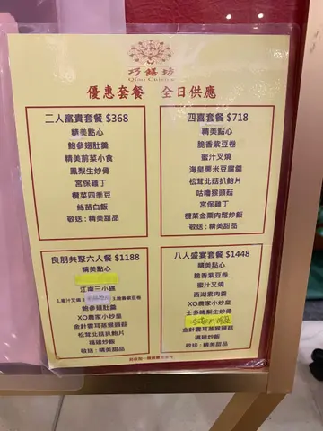 好朋友由2年前开始因为健康而每星期有2日素食日,一开头我听到都觉得好似好辛苦,因为感觉素食又会好清淡,又无野食,最近佢成日都叫我去试下食,所以今次都尝试同佢去试🎀巧饍坊🎀食下斋先🌹一去到环境好舒服,坐位不会太逼,成个人都会好安静🧘🏻♀️我哋望餐牌见到有点心,小食,小菜,粉面,套餐同甜品😍因为餐厅太多选择,所以我哋直接叫「养生健康套餐」😂粟米豆腐汤饮落好清甜好舒服🩷小食脆香紫豆卷整到好脆,好似食响铃一样脆卜卜🧡3款小菜➕2个白饭秘制叉烧🐷整到好似,味道同口感同真叉烧一样糖醋鱼🐟酸酸甜甜,送饭一流时蔬🥬用咗小白菜炒得好甜甜品🫘豆沙窝饼唔会太甜又唔会好油,豆沙好滑,好好食😍另外我哋再加个烧卖好大粒超足料💛基本上比较清淡少油,份量好多,3个人食都够食😂下次要再去食养生餐先得👍🏻